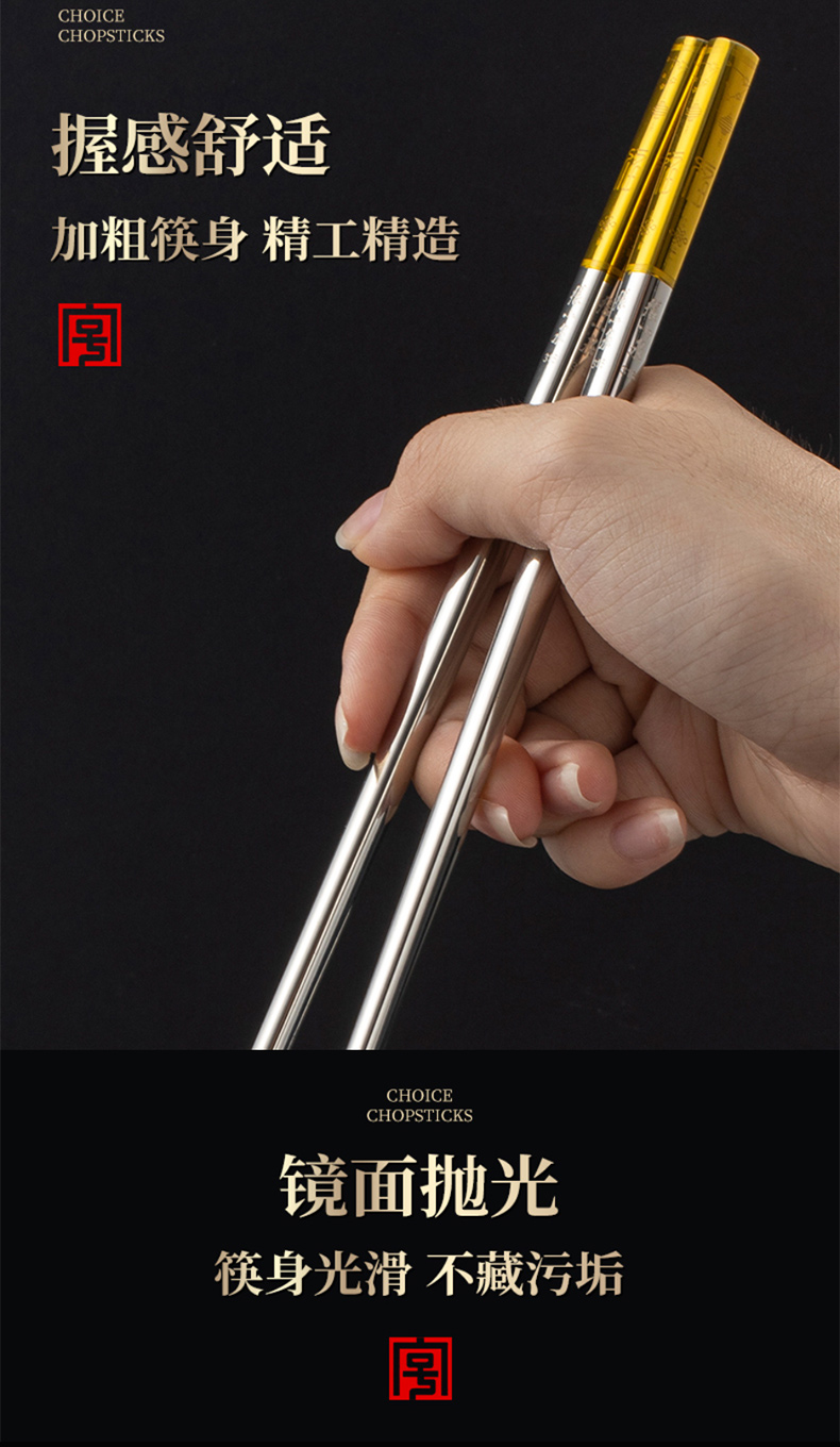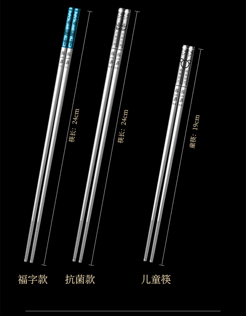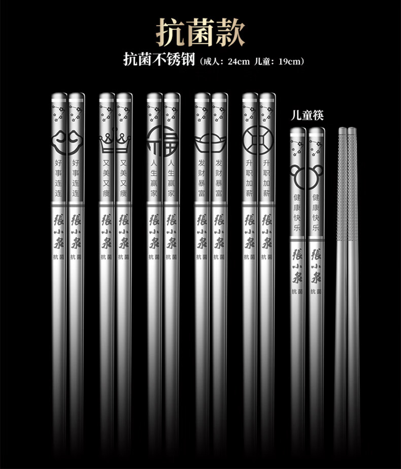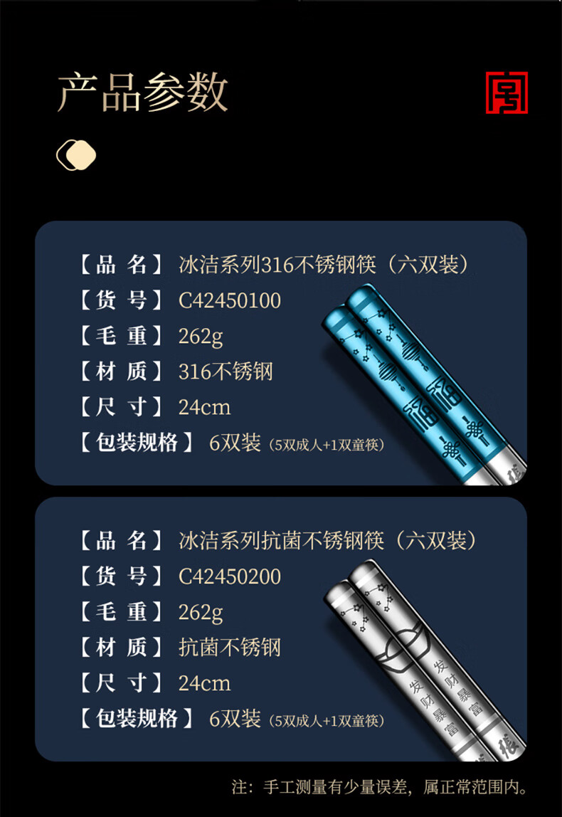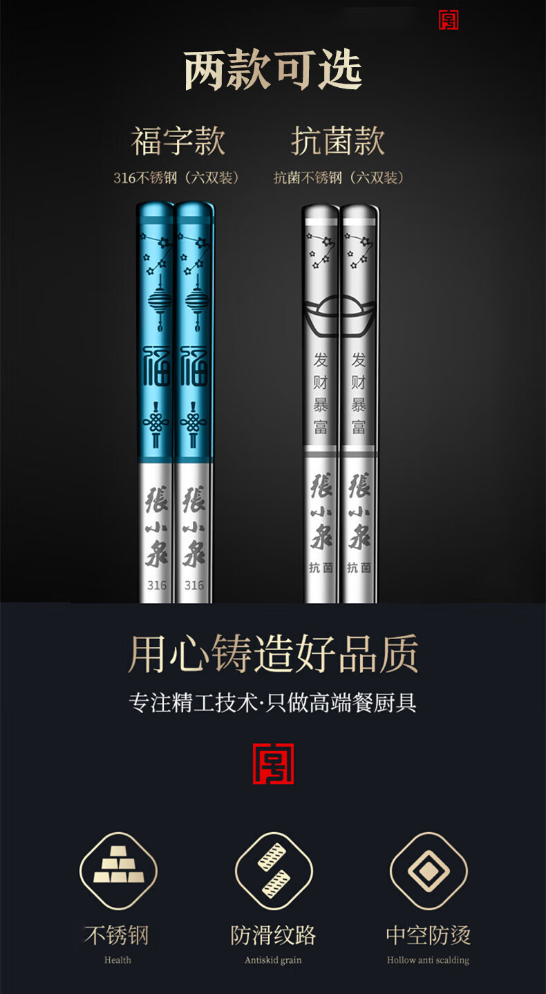 Zhang Xiaoquan 316 stainless steel chopsticks gift box, household non-slip meal-sharing chopsticks, six pairs (including 1 pair of children's chopsticks) 24CM