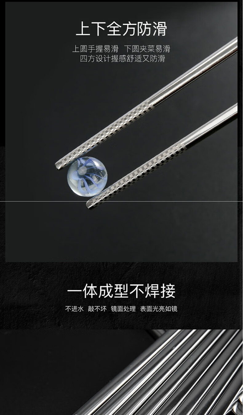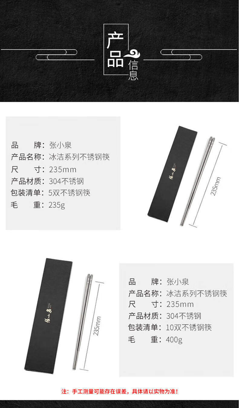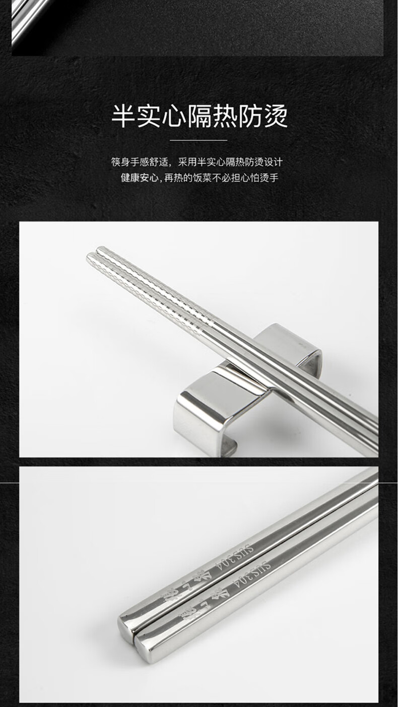 Zhang Xiaoquan Bingjie series 304 stainless steel chopsticks 10 pairs in gift box, high temperature sterilizable, length 23.5cm