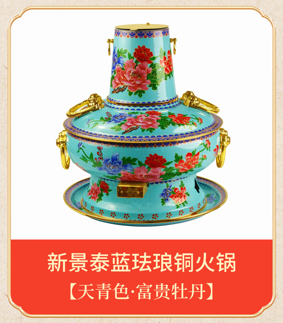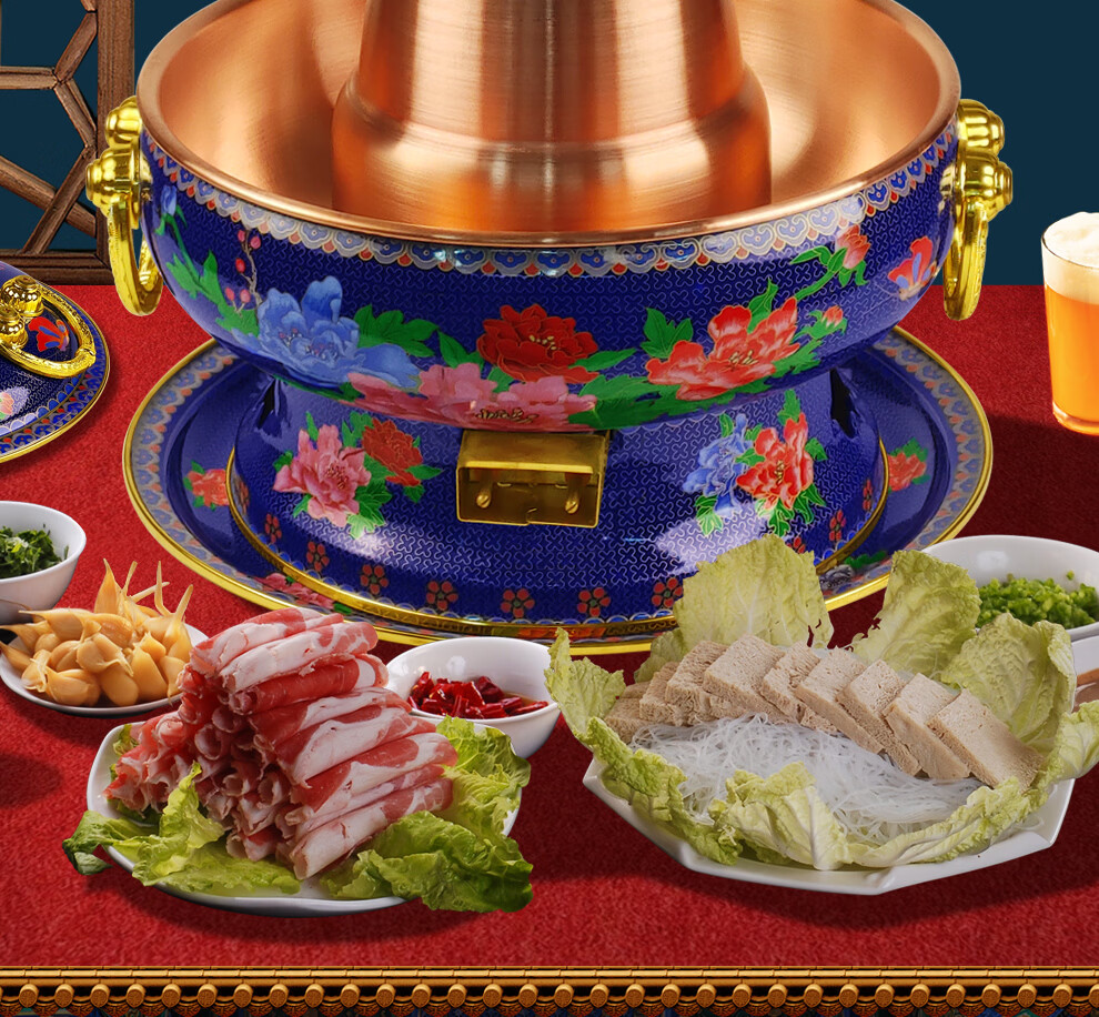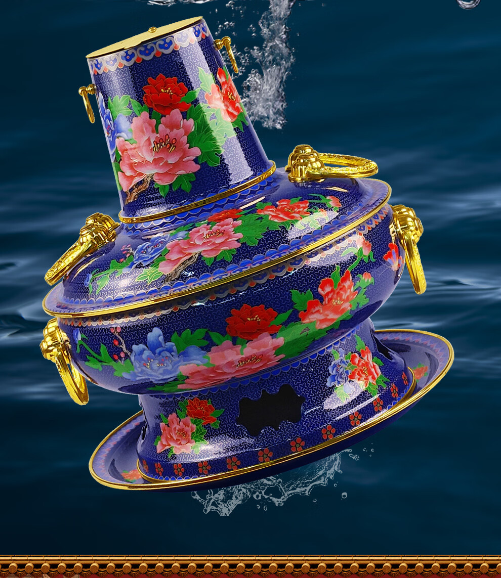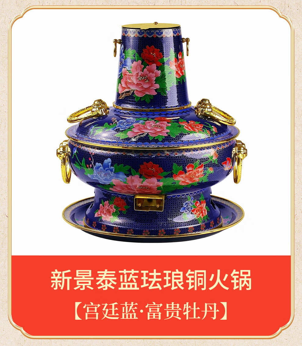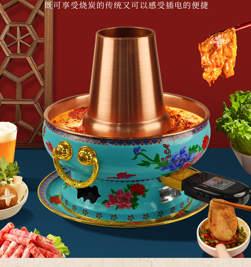 Guo Yiyuan New Cloisonné Copper Hot Pot Electric Charcoal Dual-Purpose Washable Thickened Enamel Copper Pot Old Beijing Shabu Shabu Pot 34 Blue Single Flavor