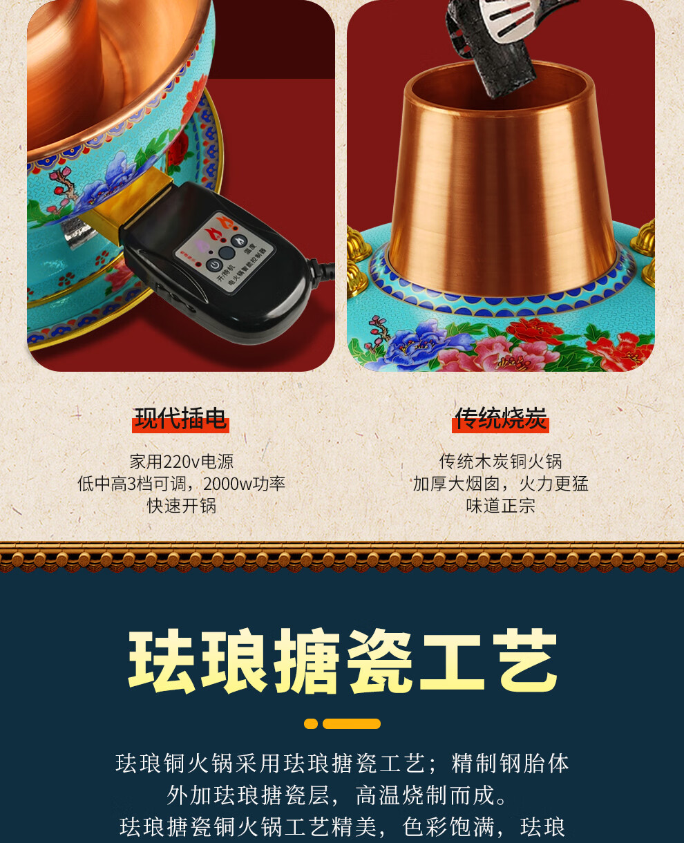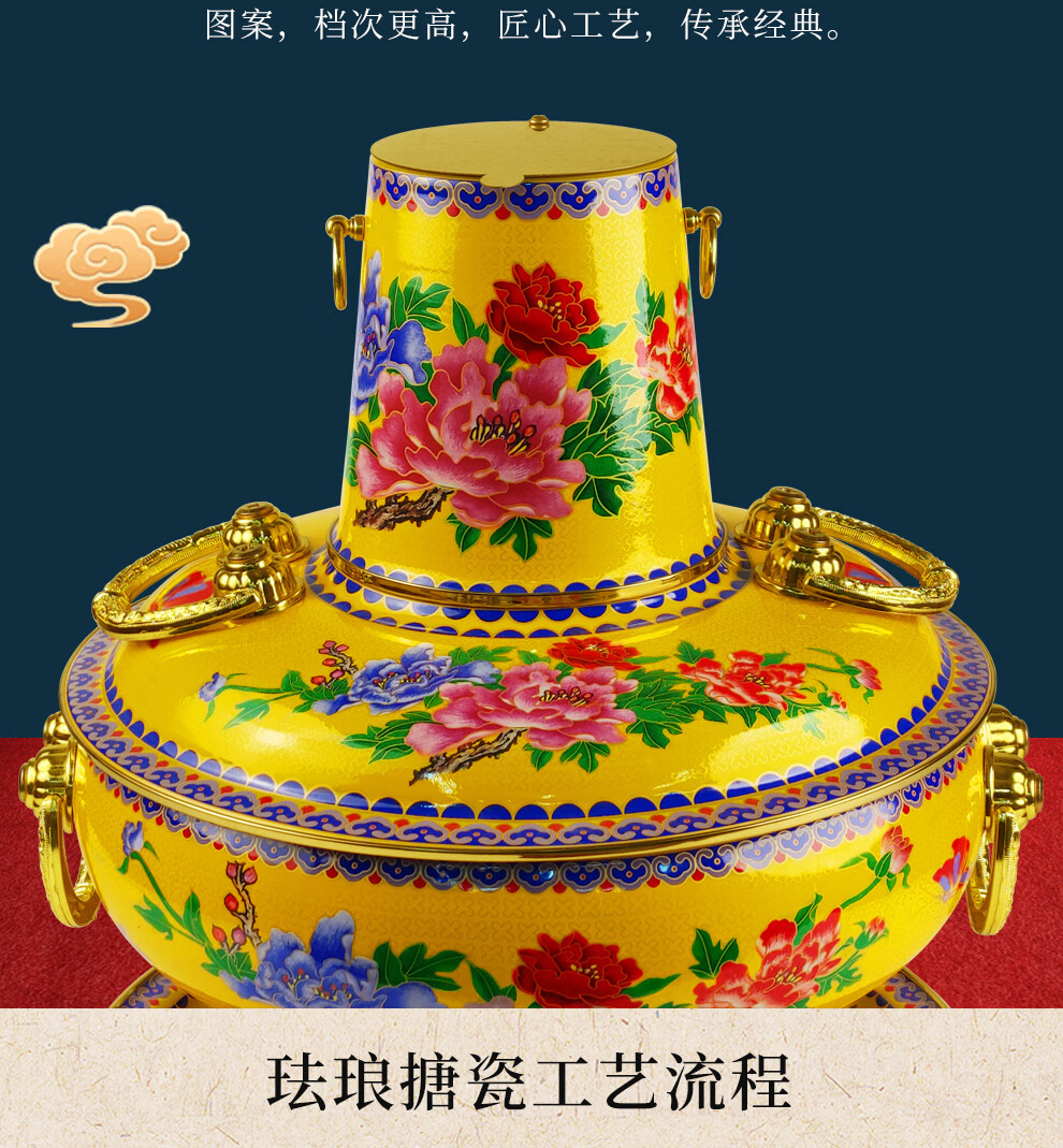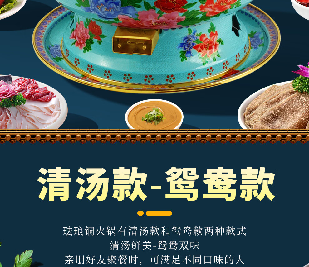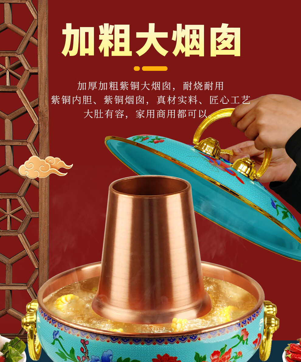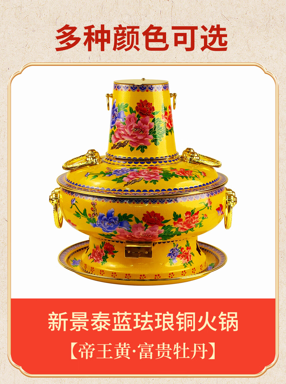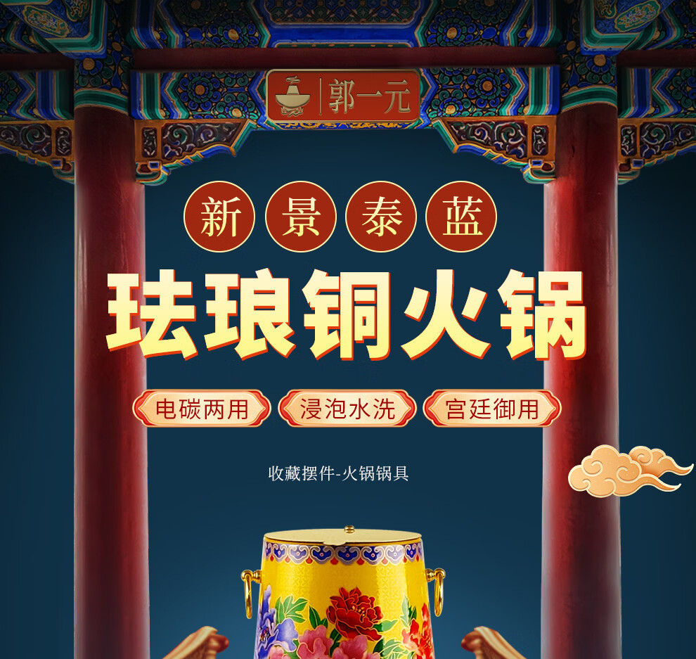 Guo Yiyuan New Cloisonné Copper Hot Pot Electric Charcoal Dual-Purpose Washable Thickened Enamel Copper Pot Old Beijing Shabu Shabu Pot 34 Blue Single Flavor
