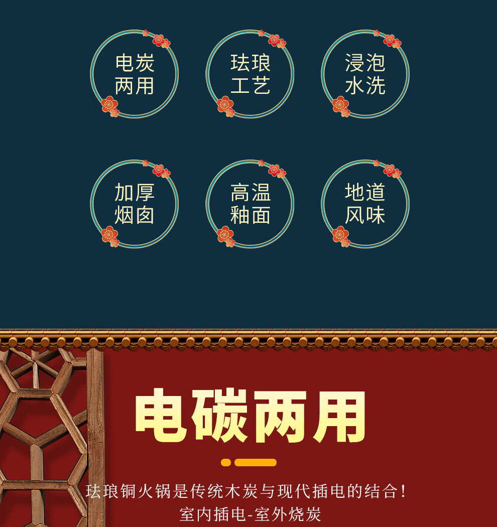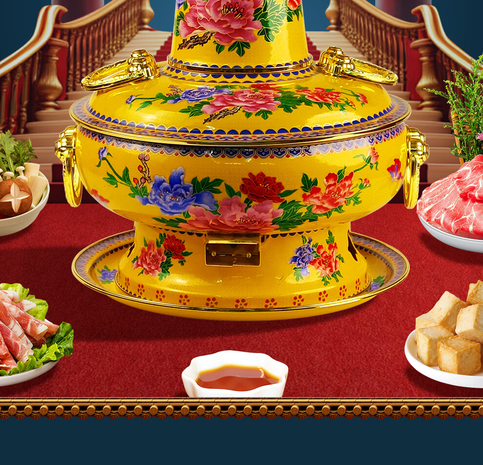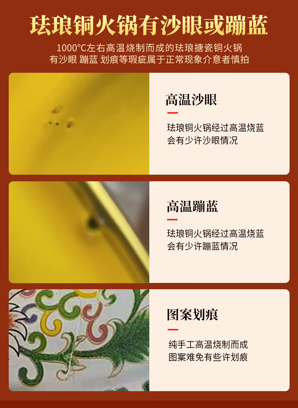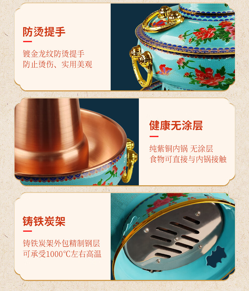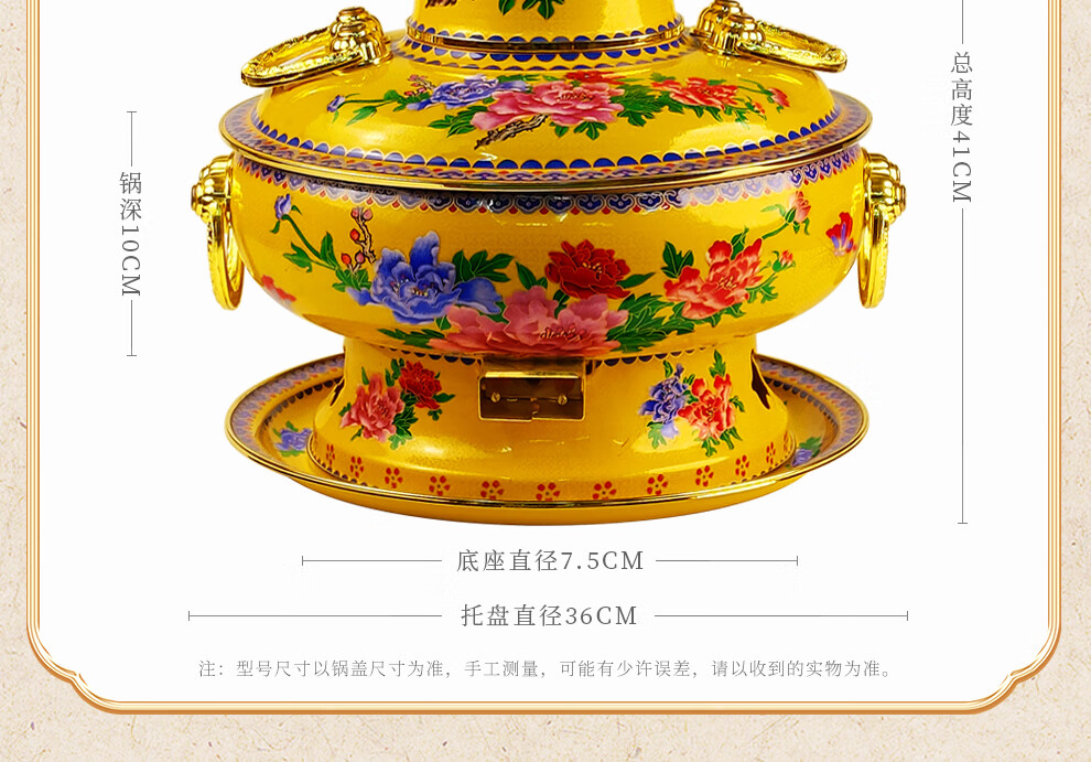 Guo Yiyuan New Cloisonné Copper Hot Pot Electric Charcoal Dual-Purpose Washable Thickened Enamel Copper Pot Old Beijing Shabu Shabu Pot 34 Blue Single Flavor