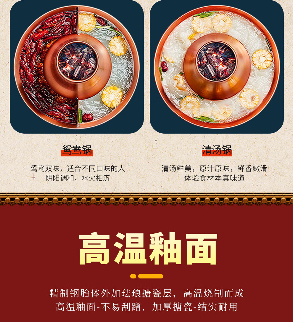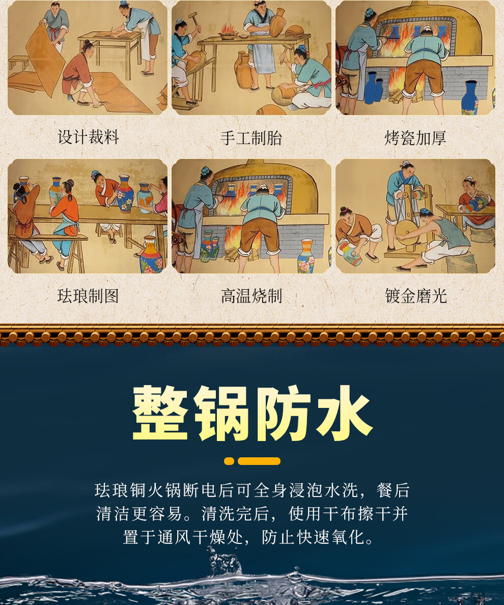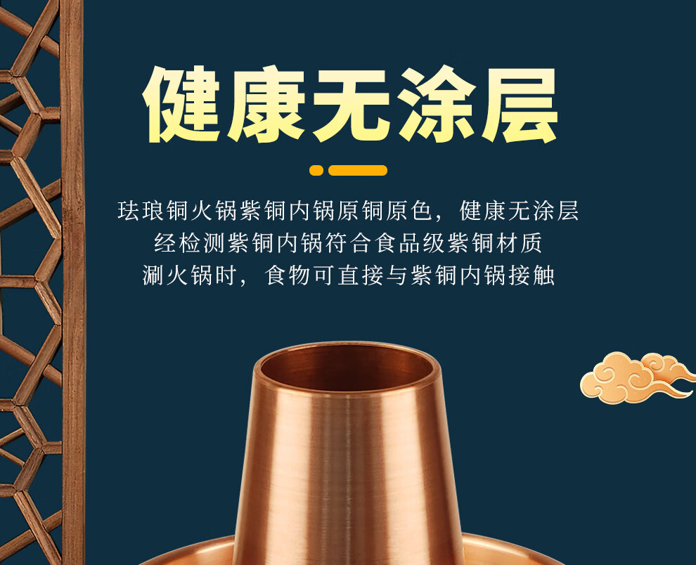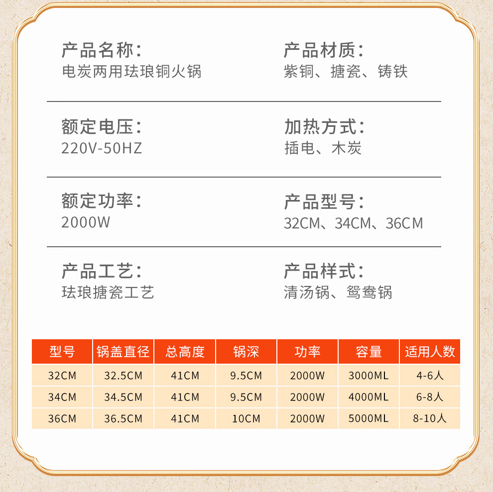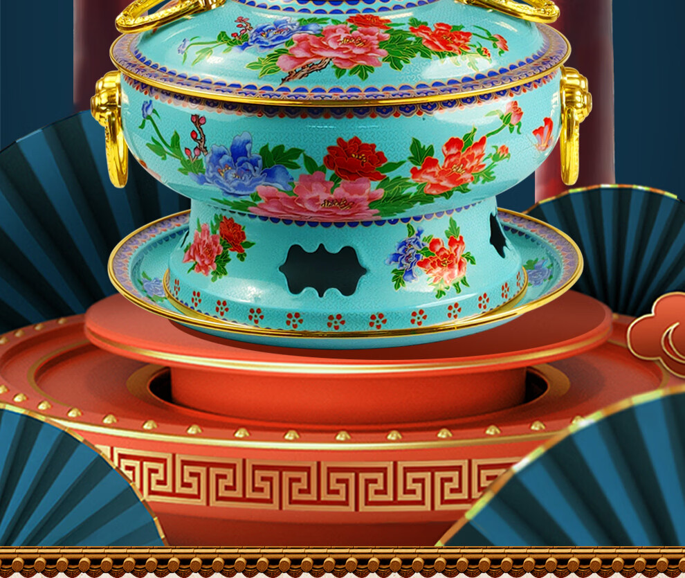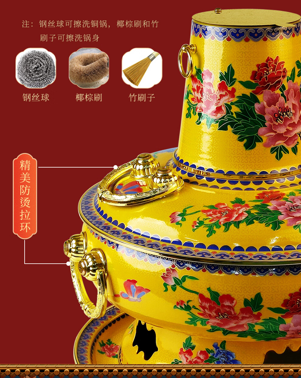 Guo Yiyuan New Cloisonné Copper Hot Pot Electric Charcoal Dual-Purpose Washable Thickened Enamel Copper Pot Old Beijing Shabu Shabu Pot 34 Blue Single Flavor