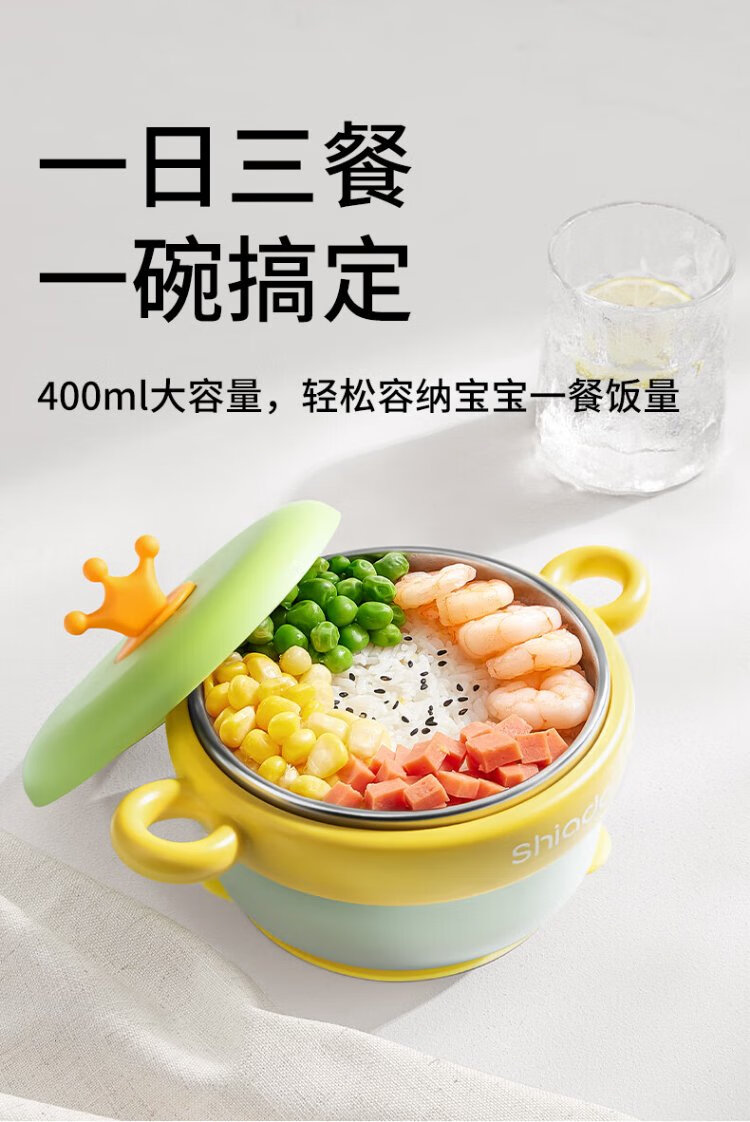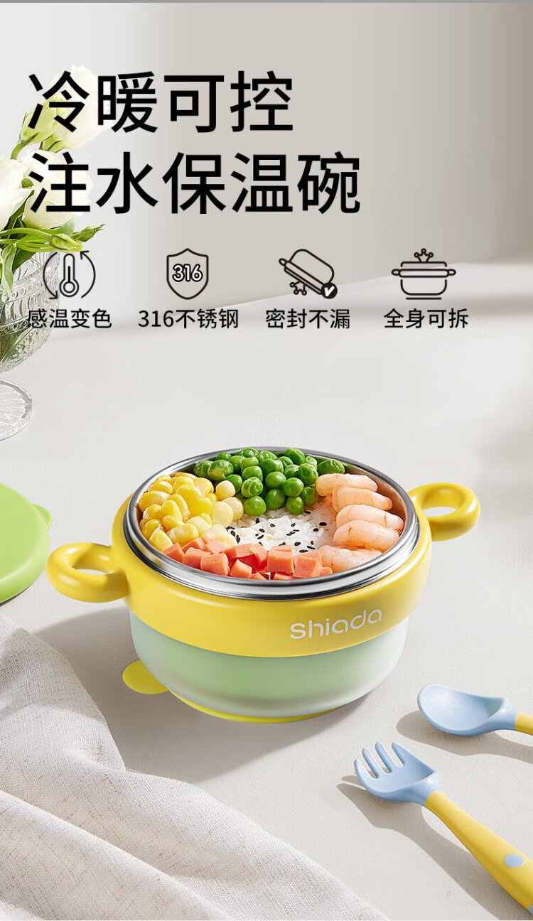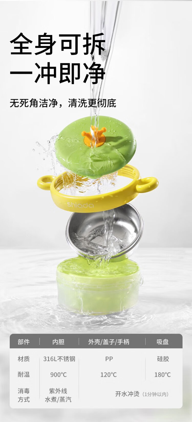 Xin'andai children's tableware supplementary food bowl baby water-filled thermos bowl removable 316 multi-function grinding bowl Yunlu