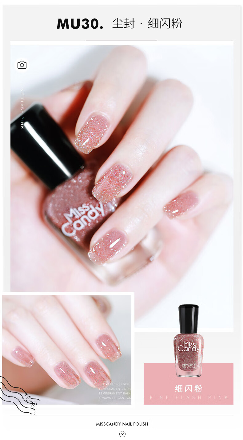 Miss Candy Whitening Versatile 15ml Nail Polish No Bake Quick Drying Long Lasting Peelable Nude Pink Manicure Fine Glitter Powder MU30