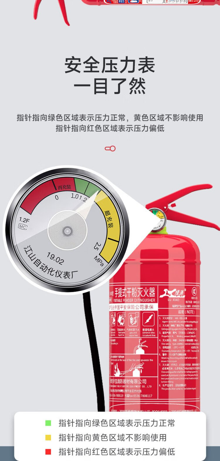 Green Fire 25 New National Standard Commercial Dry Powder Fire Extinguisher 4kg National Fire Protection 3C Certification Jingdong Self-operated Home 4kg Car Mount