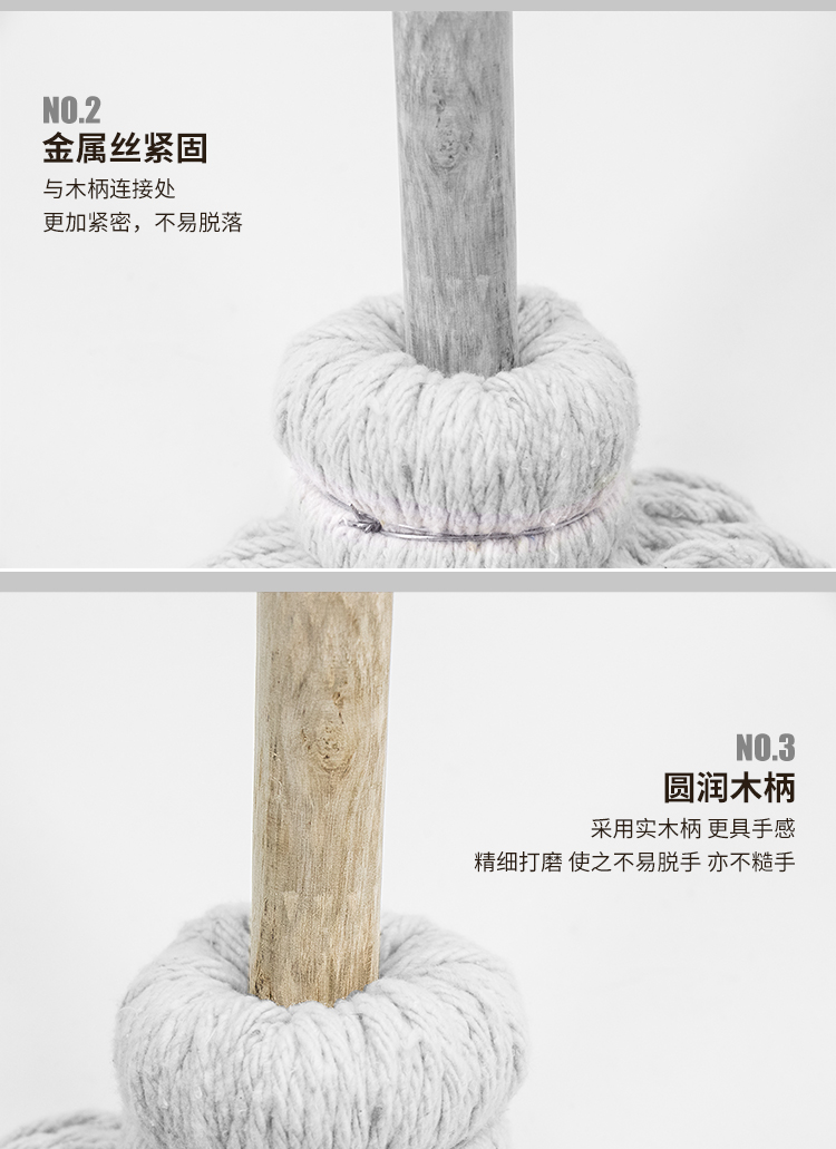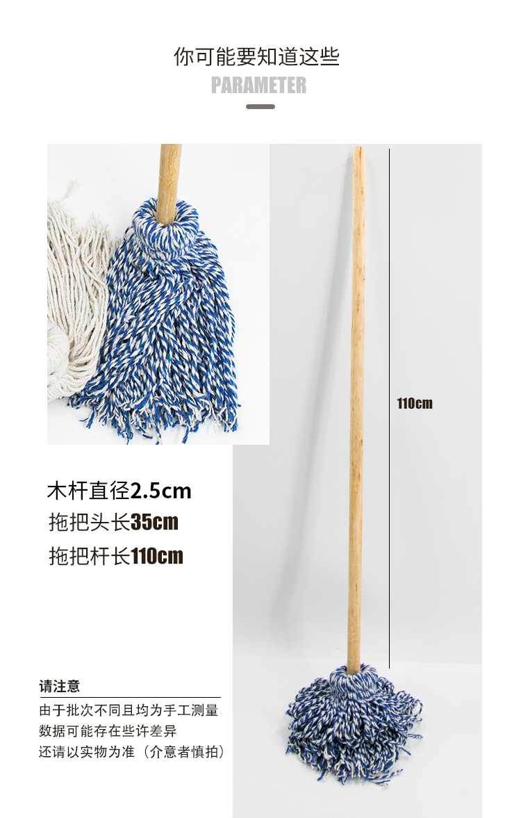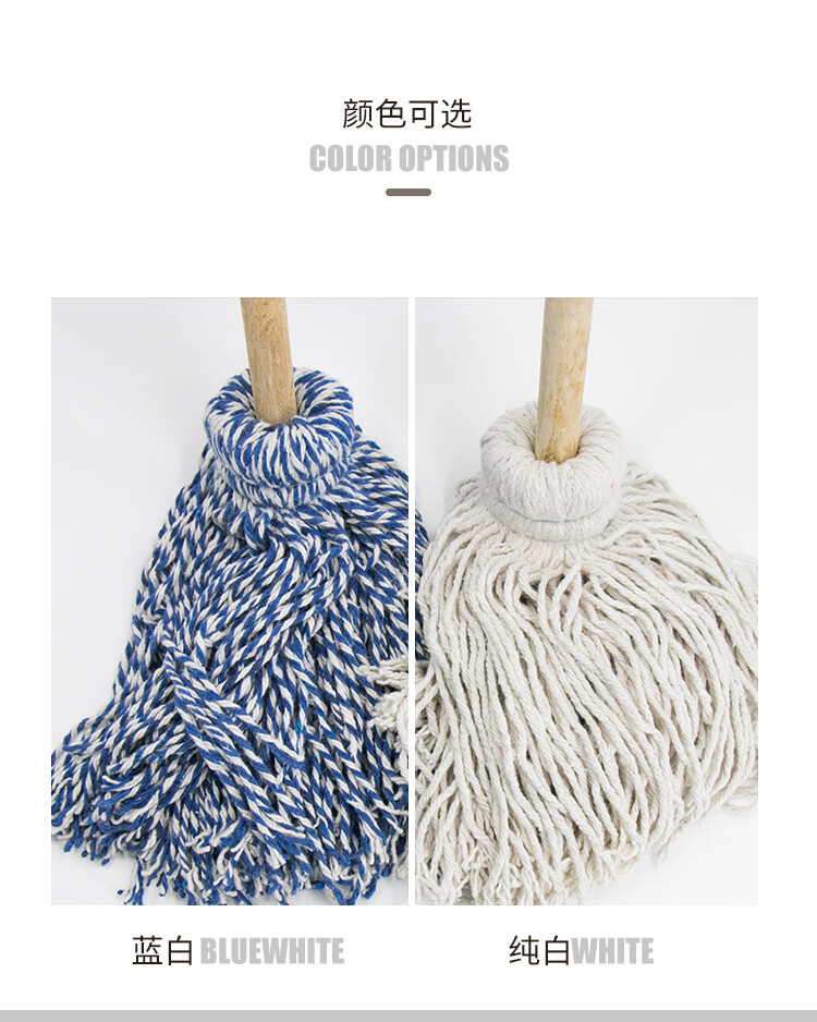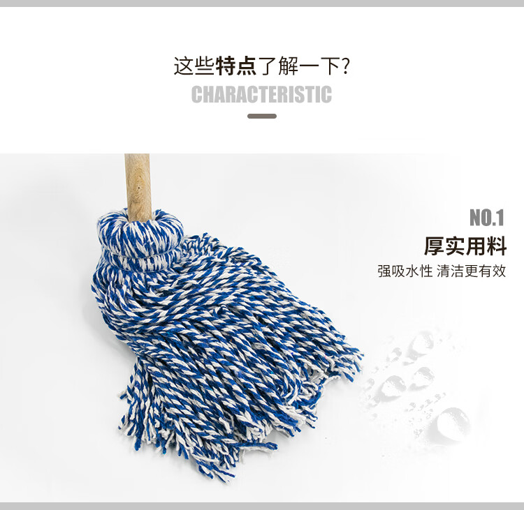 Hasdick gnjz-1026 old-fashioned wooden handle mop, thick and long wooden handle cotton mop, round head absorbent mop, blue and white line mop 1