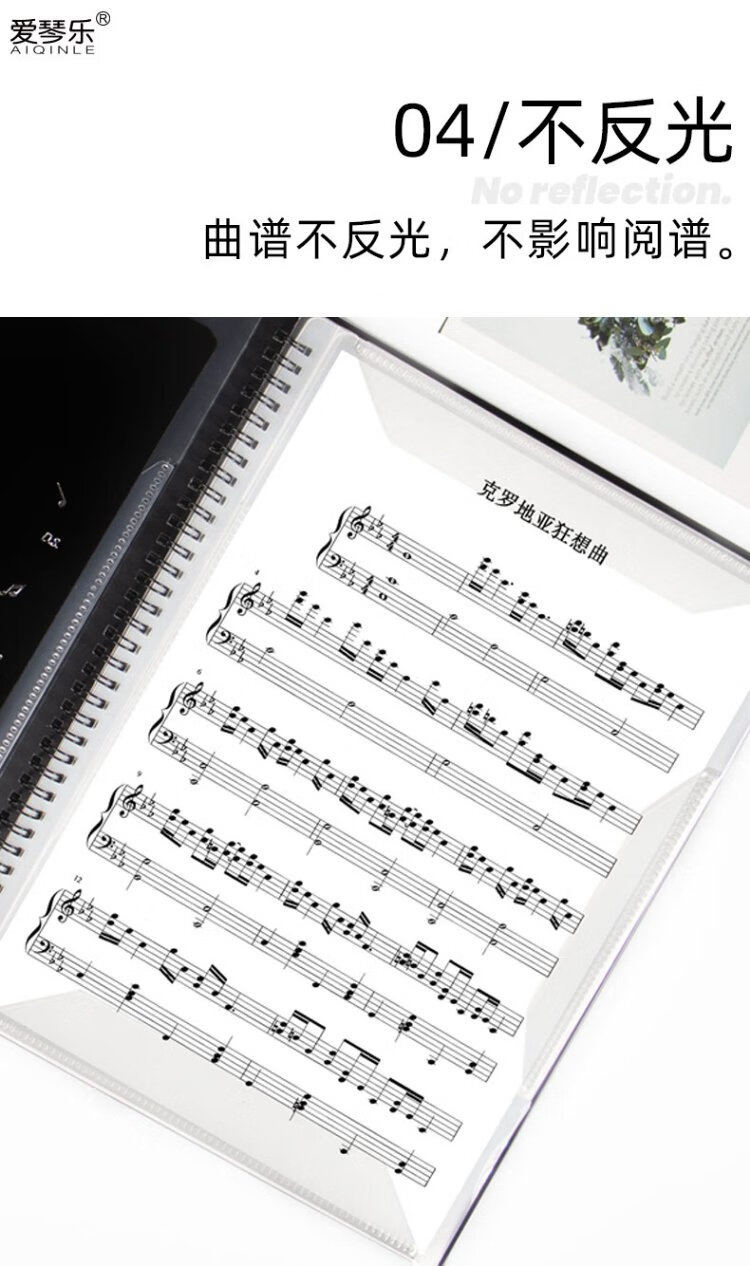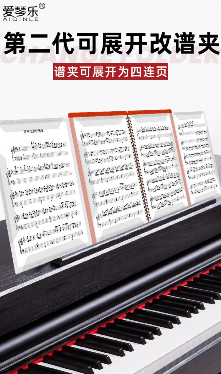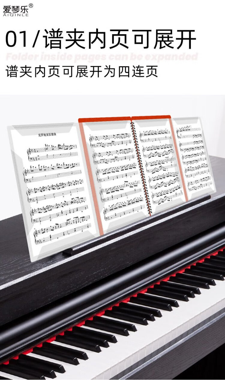 Aegean music A4 music score holder unfolds the entire book with 10 pages on all four sides and holds 40 pieces. Fashionable black piano music score holder is multi-functional and can be modified.