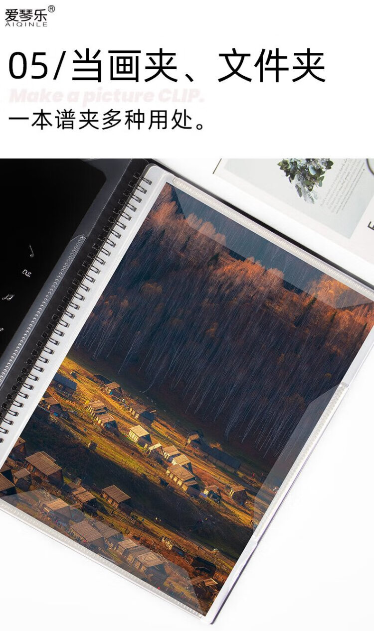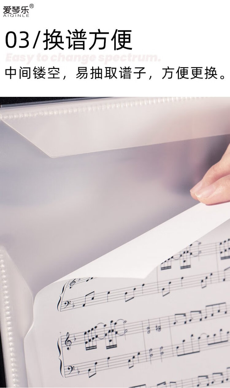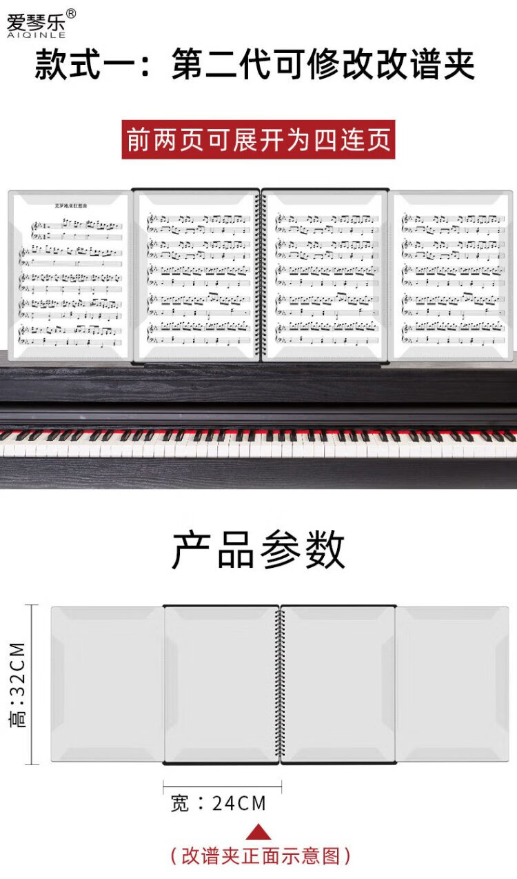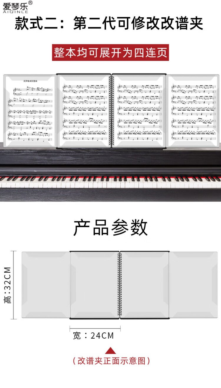 Aegean music A4 music score holder unfolds the entire book with 10 pages on all four sides and holds 40 pieces. Fashionable black piano music score holder is multi-functional and can be modified.