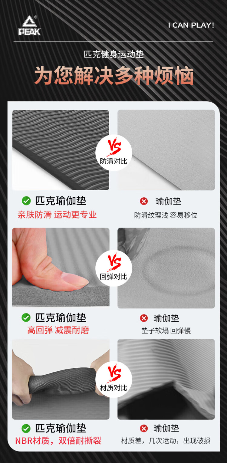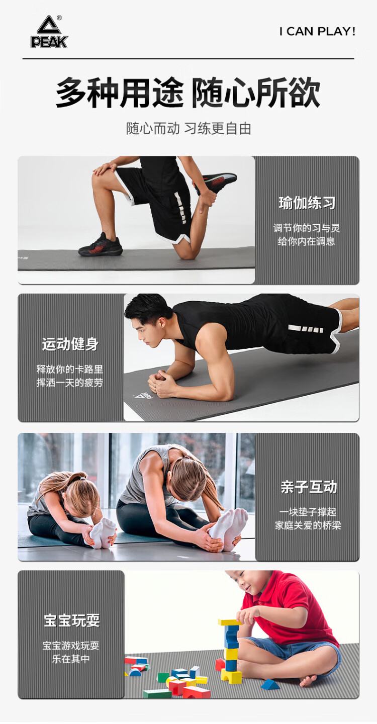 Peak yoga mat men's fitness women's home fitness mat anti-slip shock-absorbing aerobics soundproofing thickened training mat