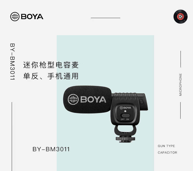 BOYA Boya Microphone BM3011 Mini Super Cardioid Condenser Microphone SLR Camera Hot Shoe Grab Microphone Mobile Live Vlog Short Video Recording Radio Microphone