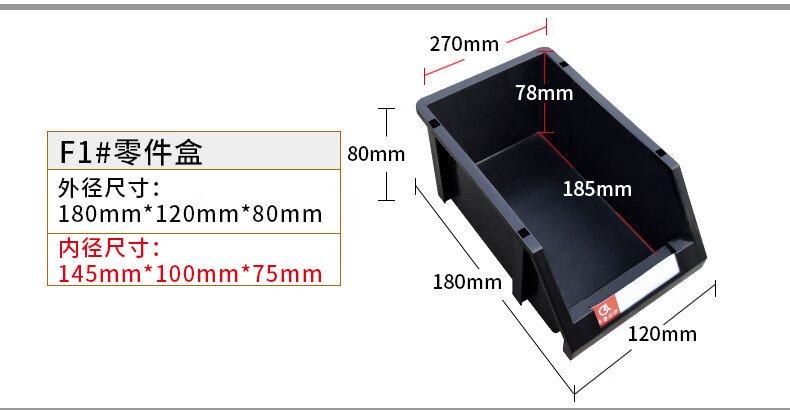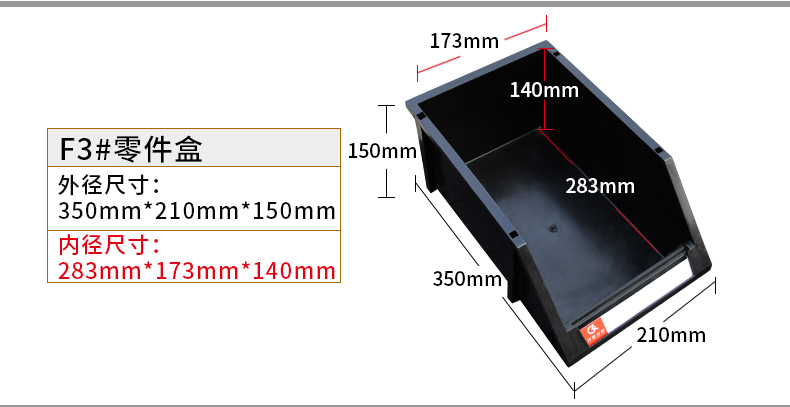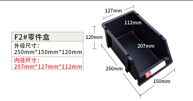Qilu Anran anti-static parts box black F2 inclined box with column 250*150*120MM combined classification box material box component box organization and storage box