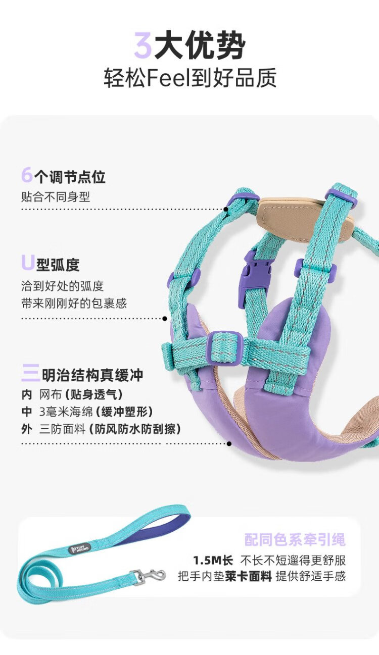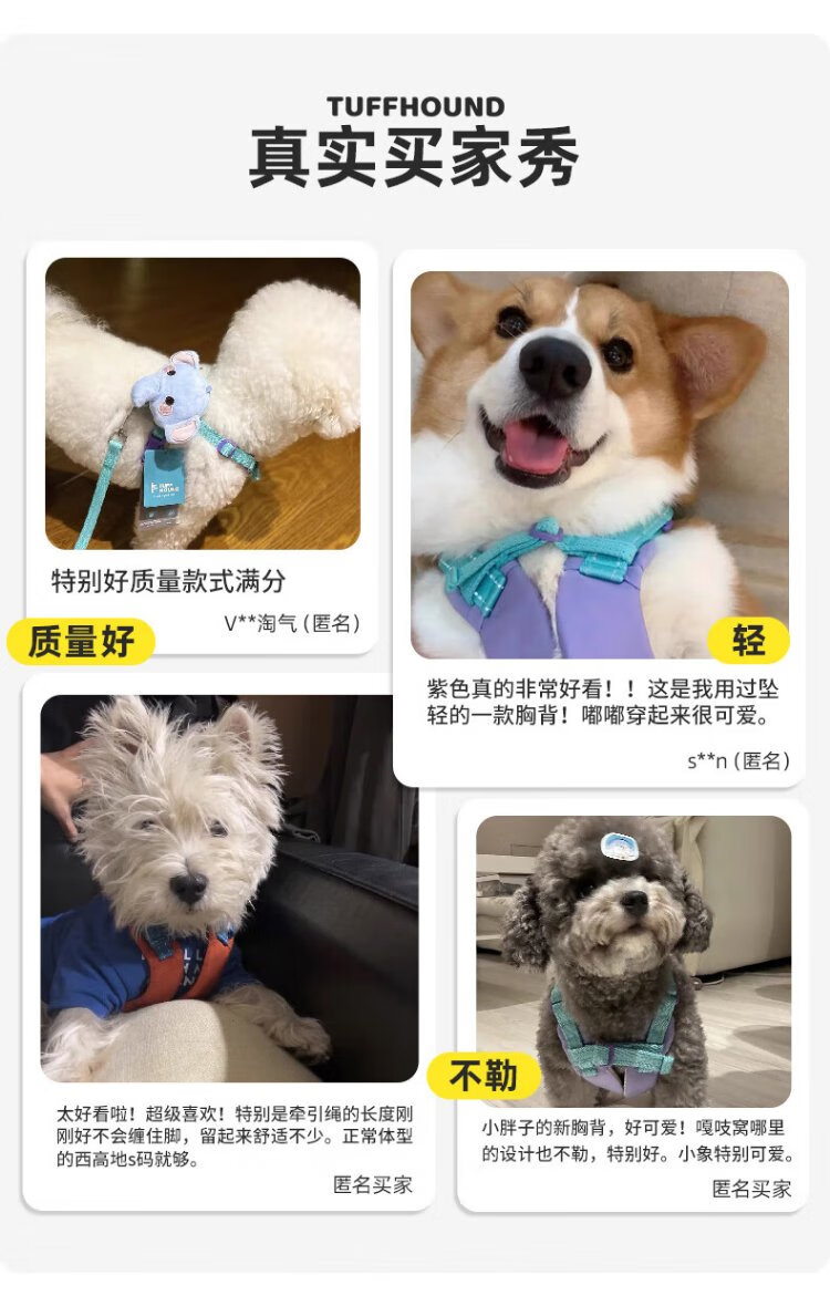 TUFF HOUND dog leash dog walking rope small and medium-sized dog explosion-proof lightweight harness TF022 sky blue S