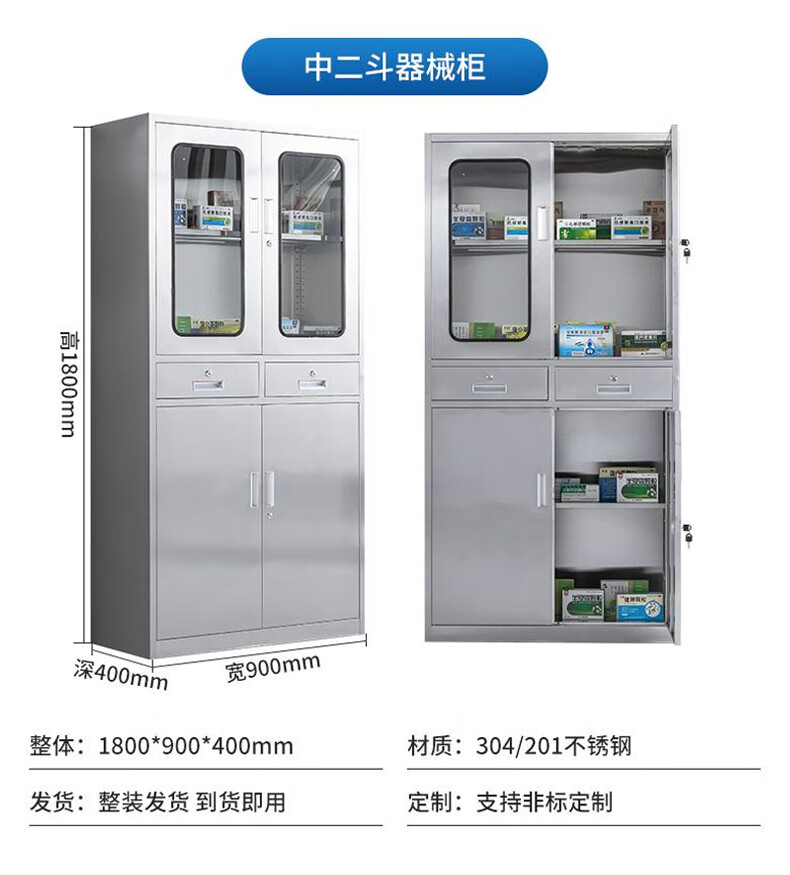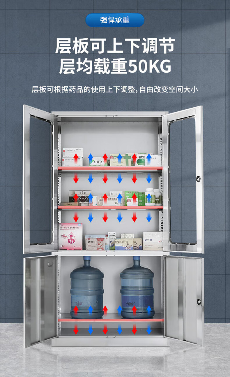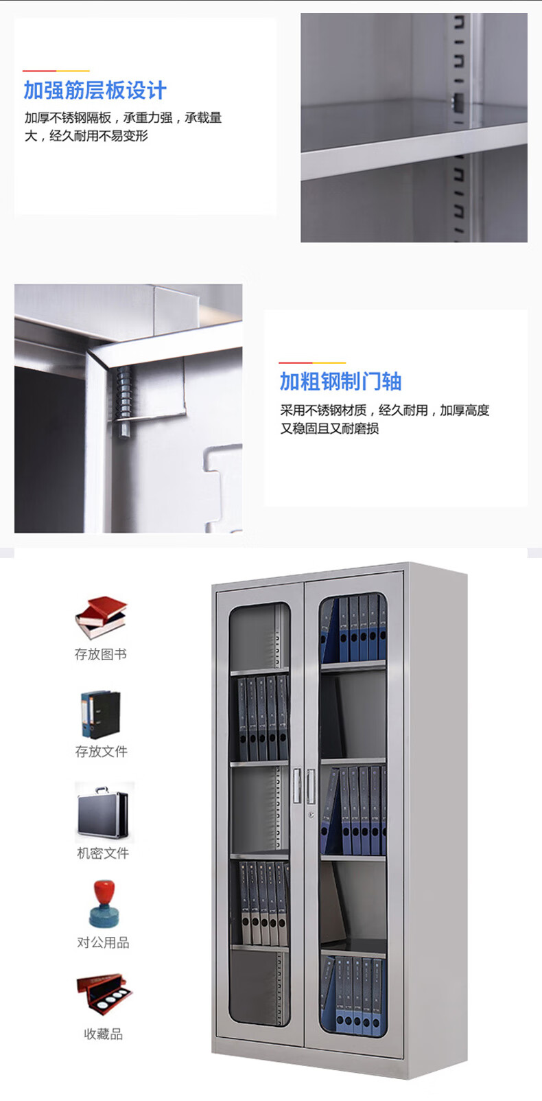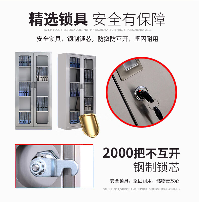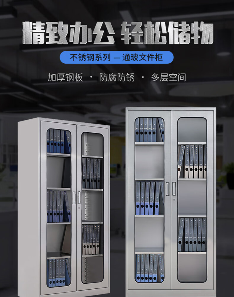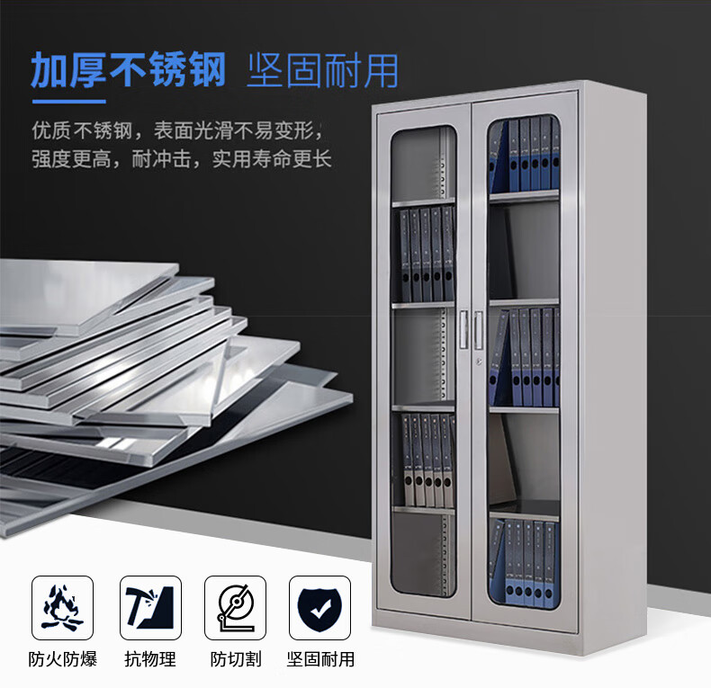 Kington 304 stainless steel filing cabinet office information cabinet filing cabinet stainless steel financial voucher bill locking glass storage cabinet 304 through glass