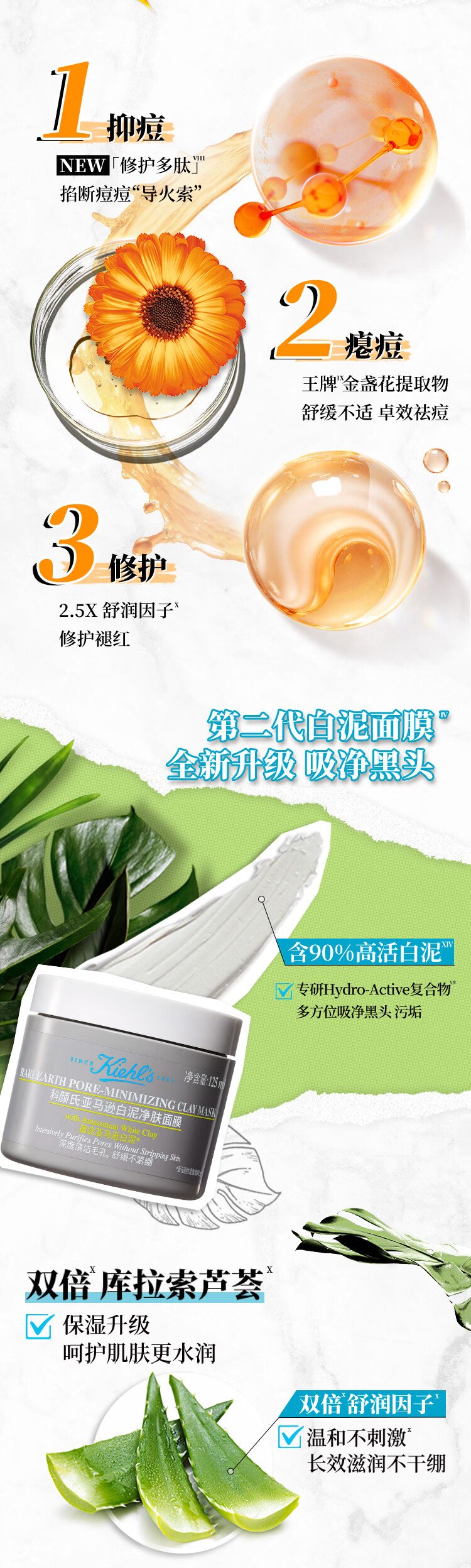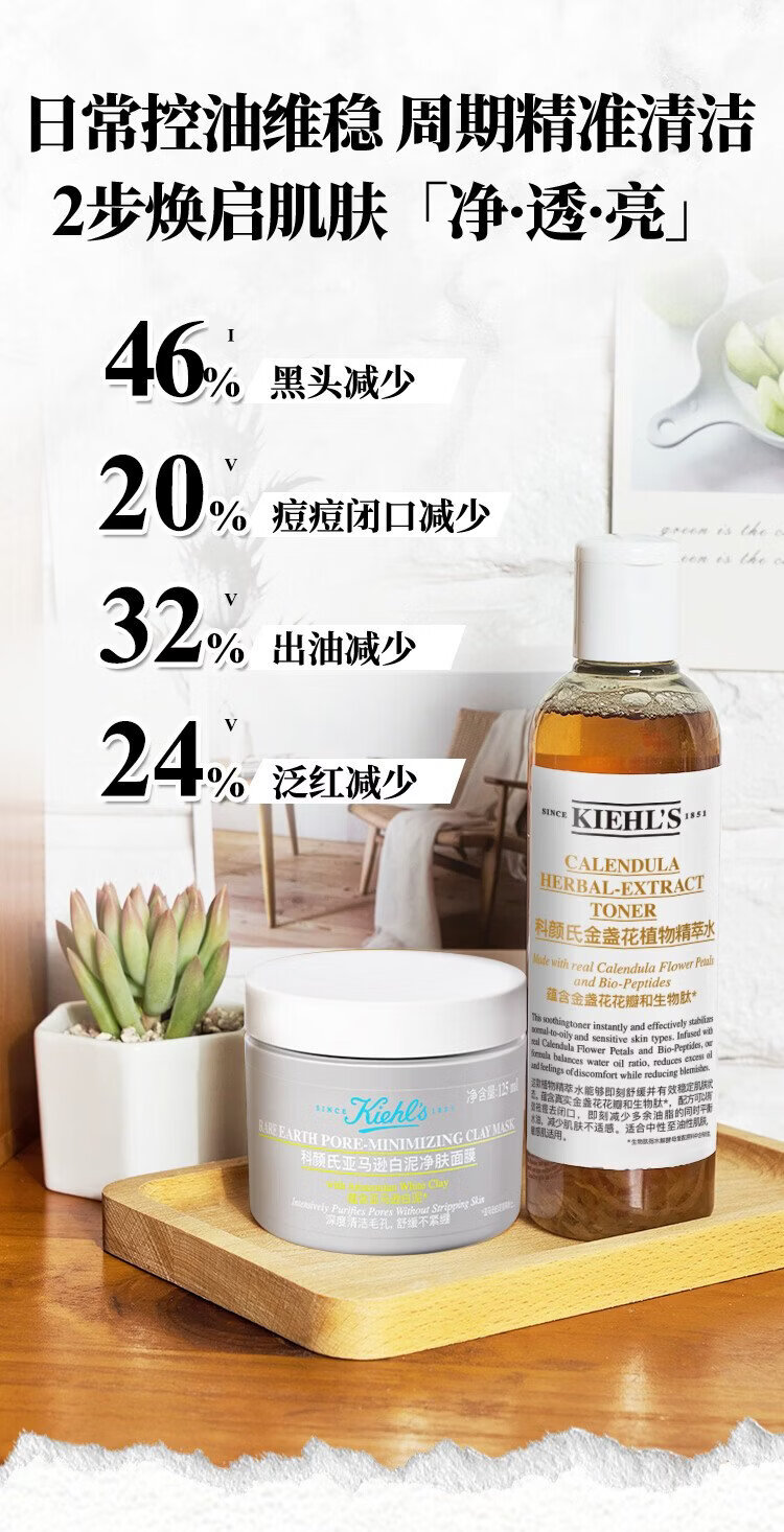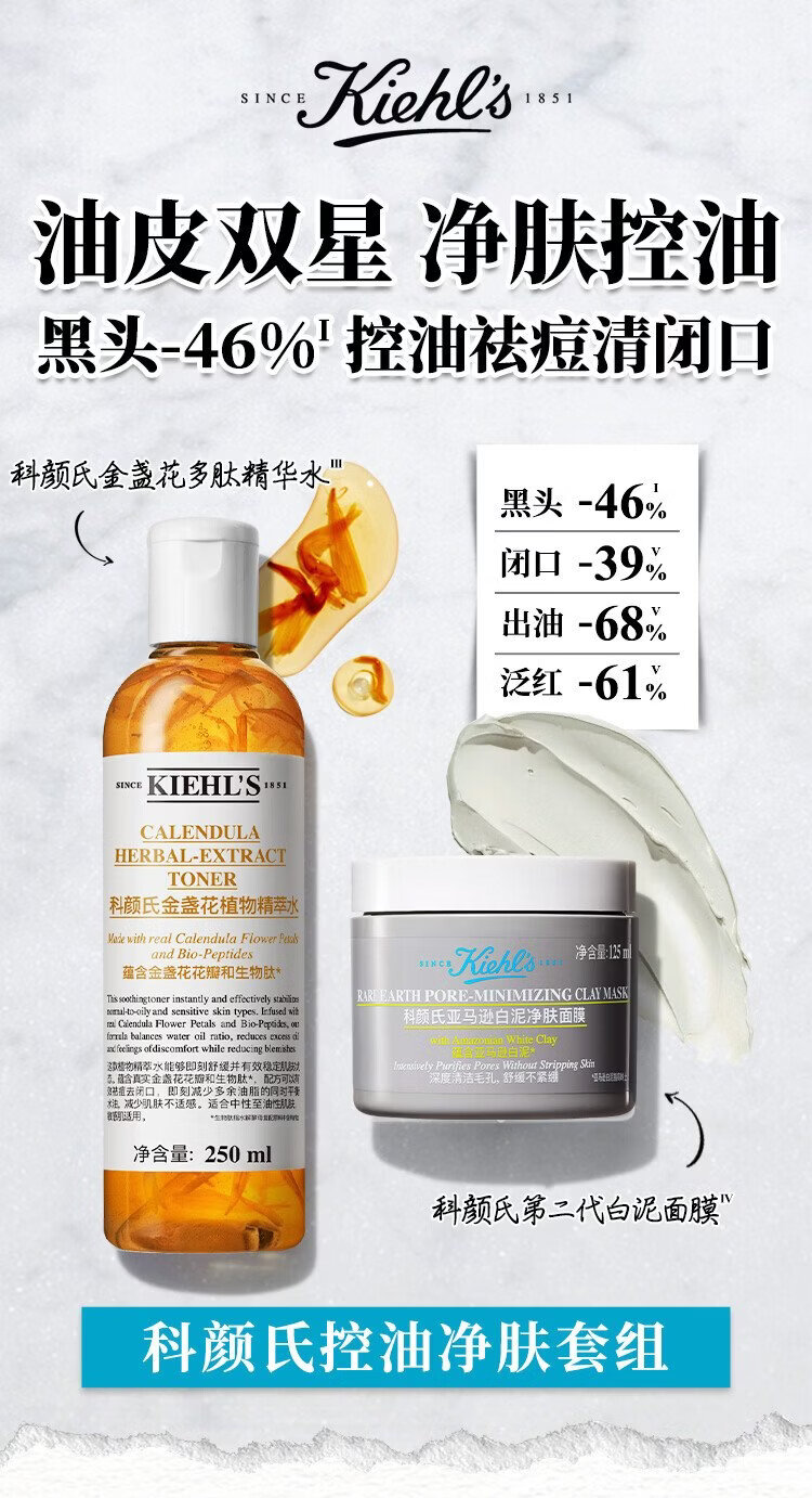 Kiehl's White Clay Mask 125ml + Calendula Water 250ml Anti-acne and Oil Control Skin Care Products New Year's Gift