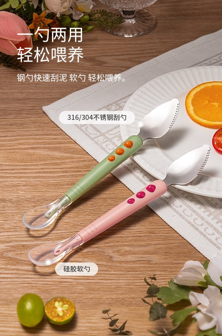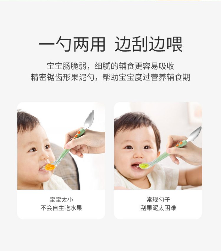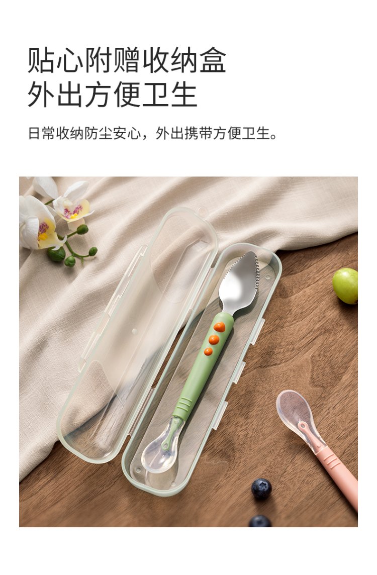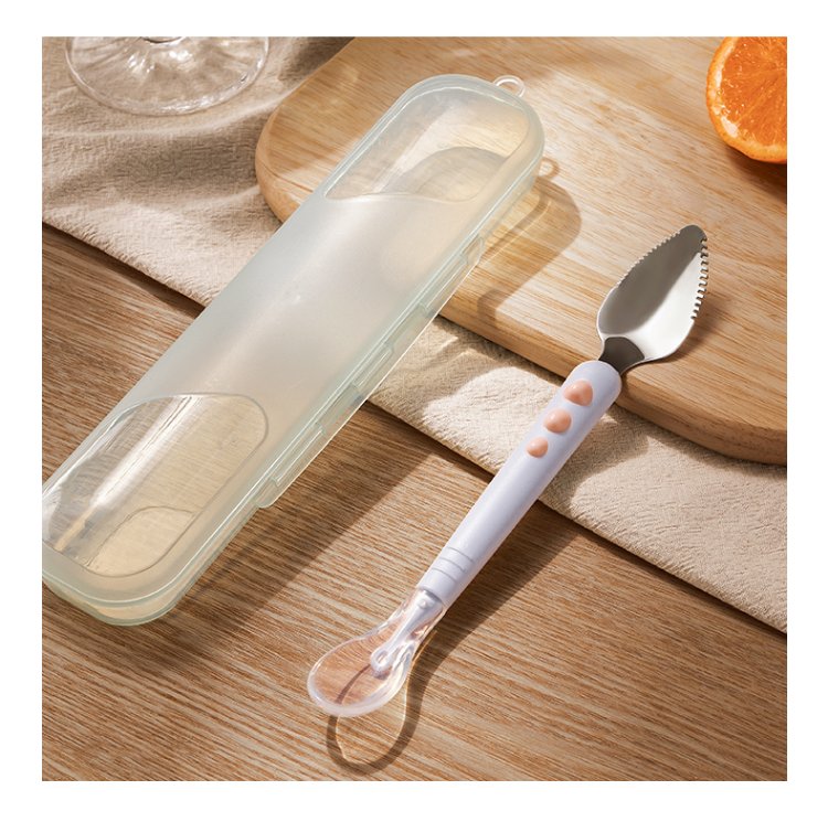 Licheers mud scraper baby baby food spoon scraper fruit mud spoon children's food supplement tableware with storage box purple