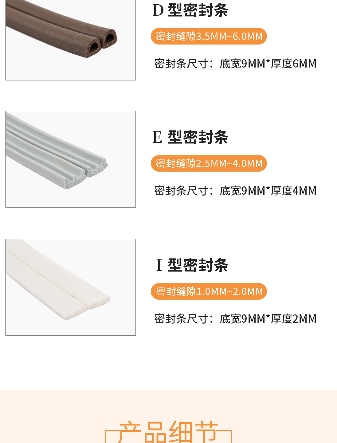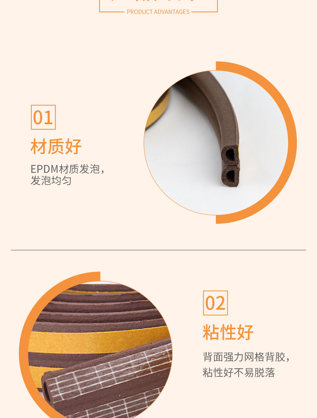 Hasdick Beijing warehouse delivery HKLJ-18 door and window sealing strips window gap sound insulation and leak-proof wind glass window sliding window sealing strips thermal insulation strips D type 9*6mm brown 10 meters