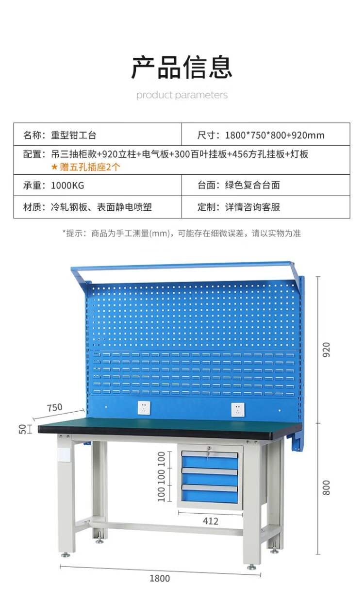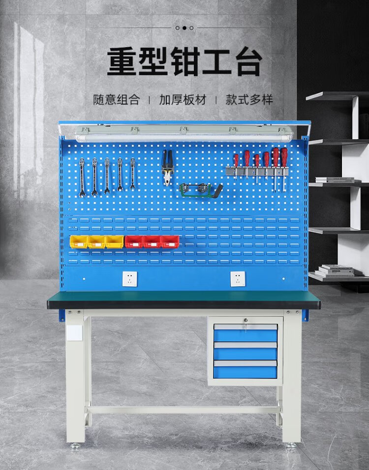 Corini heavy-duty fitter workbench 1.8 meters workshop maintenance table with drawer cabinet combination workbench wear-resistant work table light hanging three drawers + 92 models 1BFD0 can be customized