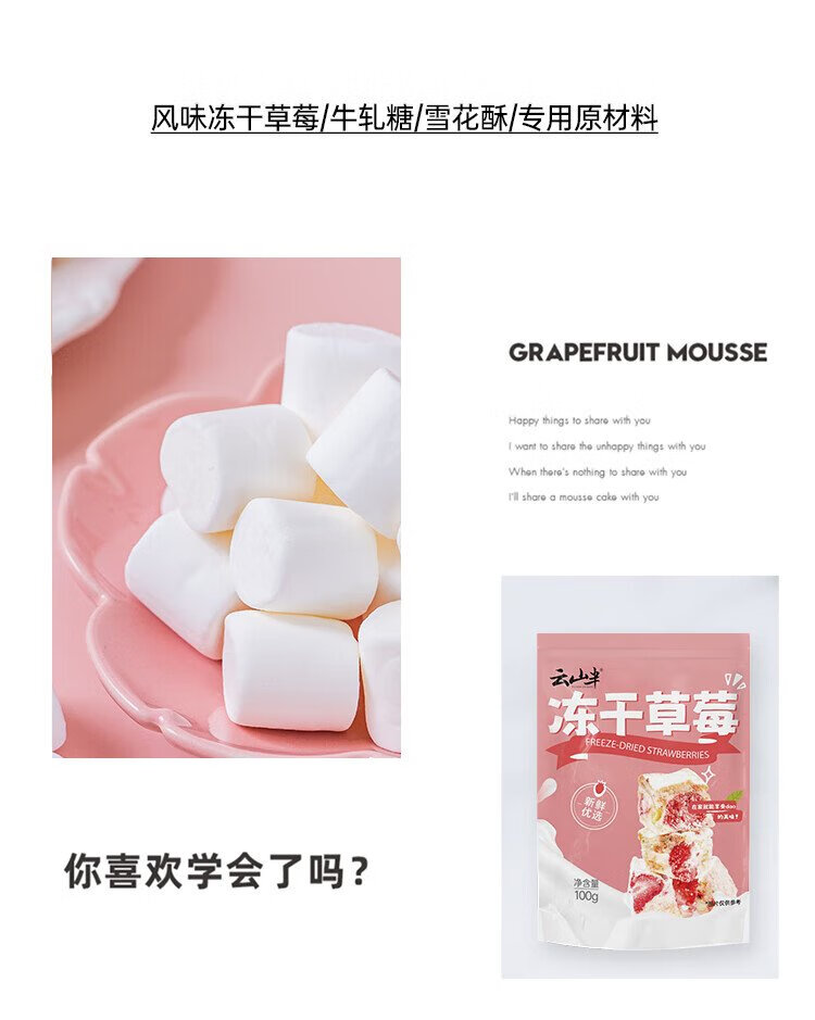 Yunshan semi-baked raw material marshmallow 500g Christmas snowflake crisp nougat milk date snack diy candy decoration barbecue