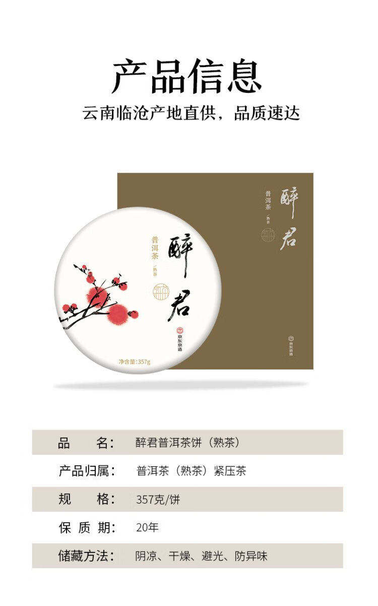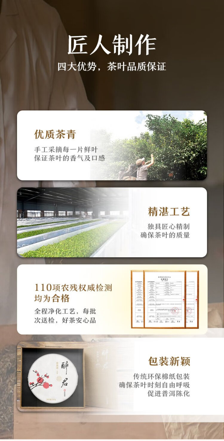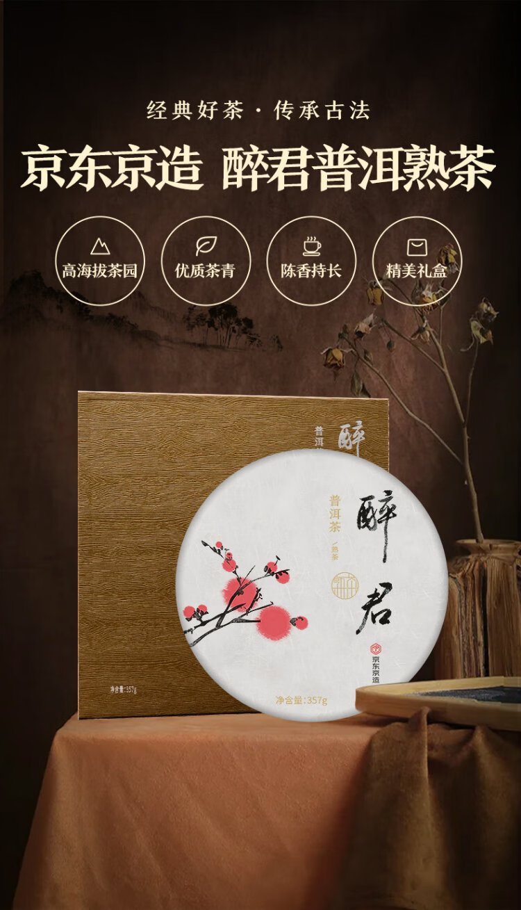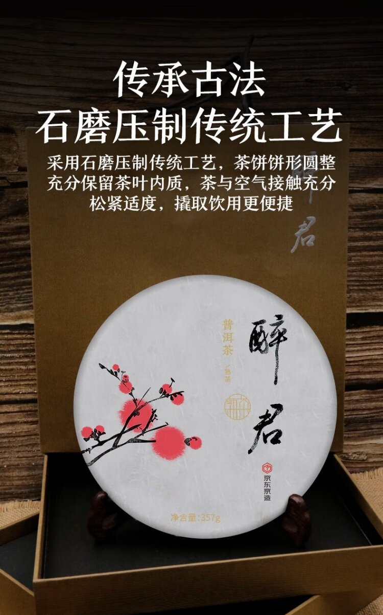 Made in Tokyo Zuijun Pu'er Tea Ripe Tea Cake 357g 2019 Spring Tea Aged Tea Gift Box Self-operated Gift Box New Year's Gift Box