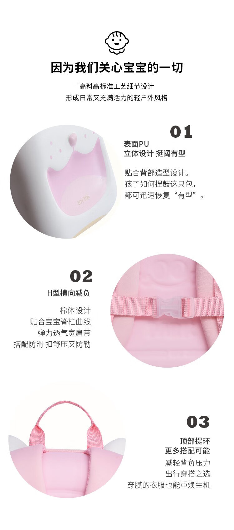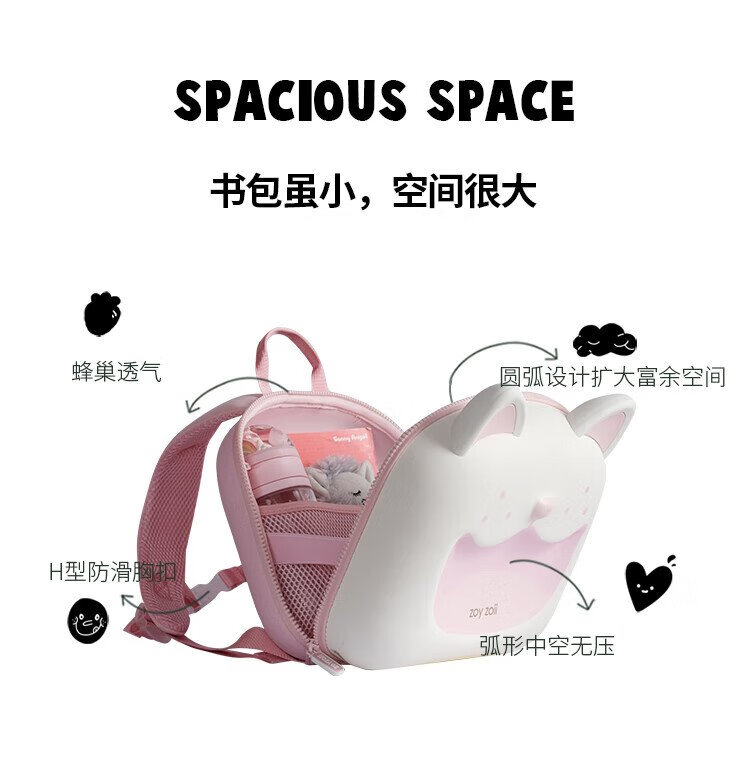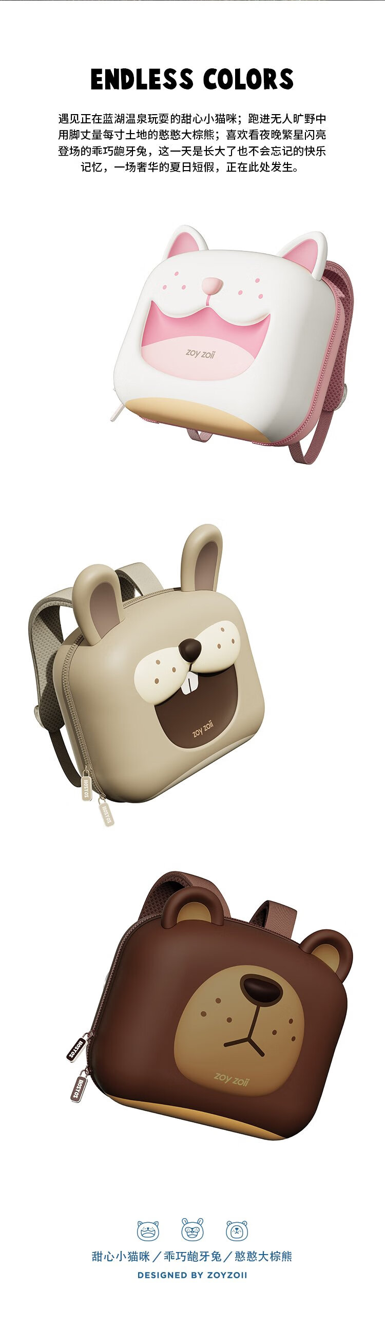 Zoy zoii kindergarten school bag children's backpack rabbit birthday gift for 3-6 year old girls cute, comfortable and lightweight travel backpack