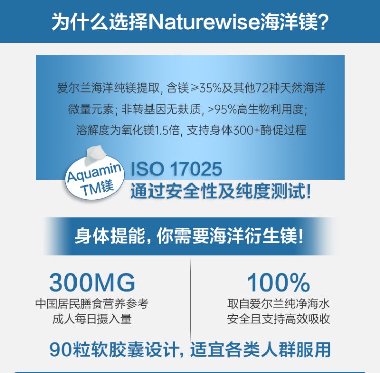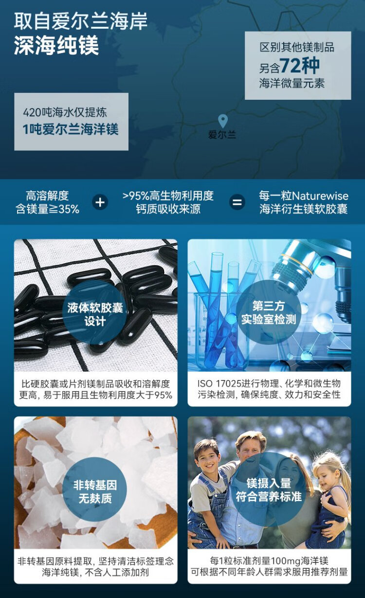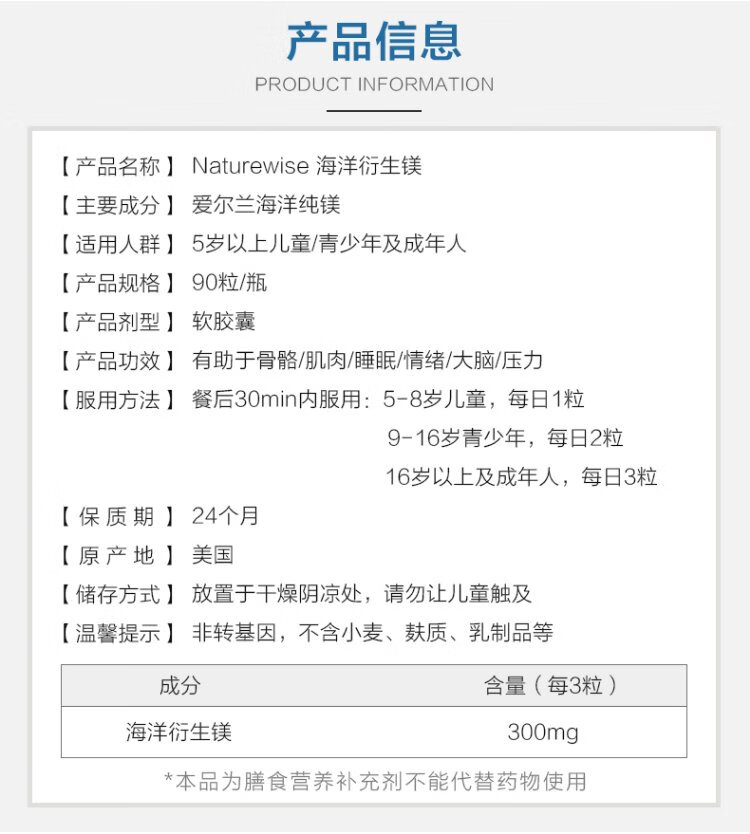 Natural Vitriol marine-derived magnesium tablets 300mg, a multi-mineral magnesium supplement for adults and children to strengthen bones, 90 tablets/bottle