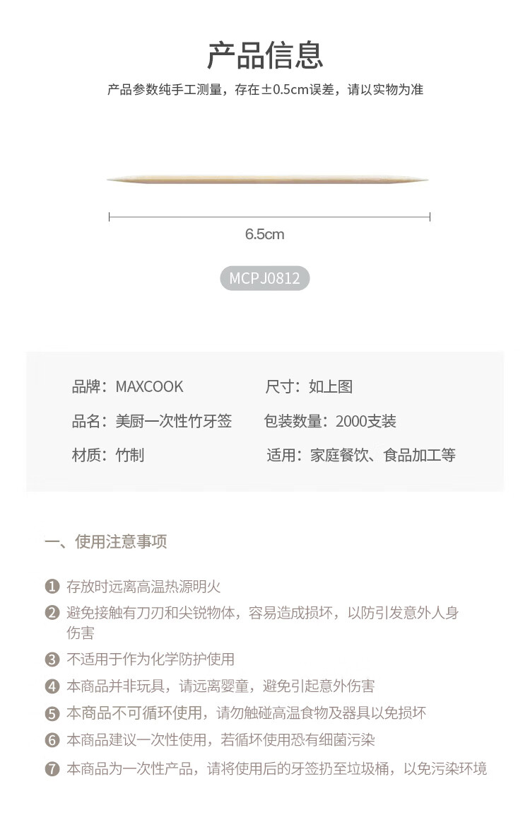 MAXCOOK Disposable Bamboo Toothpicks Household Environmentally Friendly Bags Hygienic Volume Sales Large Pack 2000 MCPJ0812