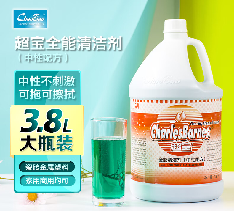 Chaobao all-purpose cleaner neutral 3.8 liters 4 bottles 1 box property cleaning factory tile floor multi-purpose all-purpose water concentrated cleaning liquid detergent DFF011