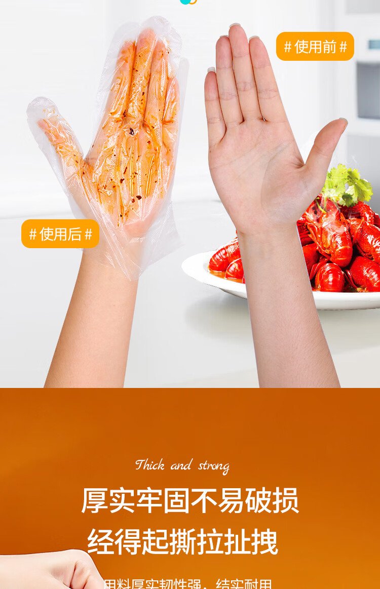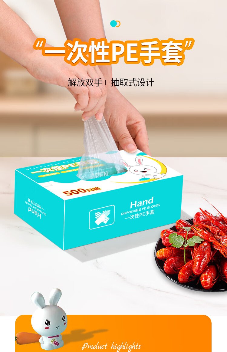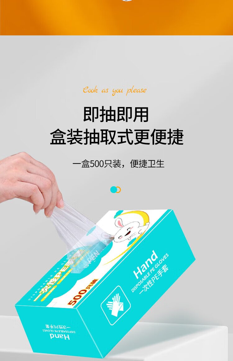 Youao disposable gloves 500 pieces in box removable food gloves thickened leak-proof plastic PE sanitary gloves
