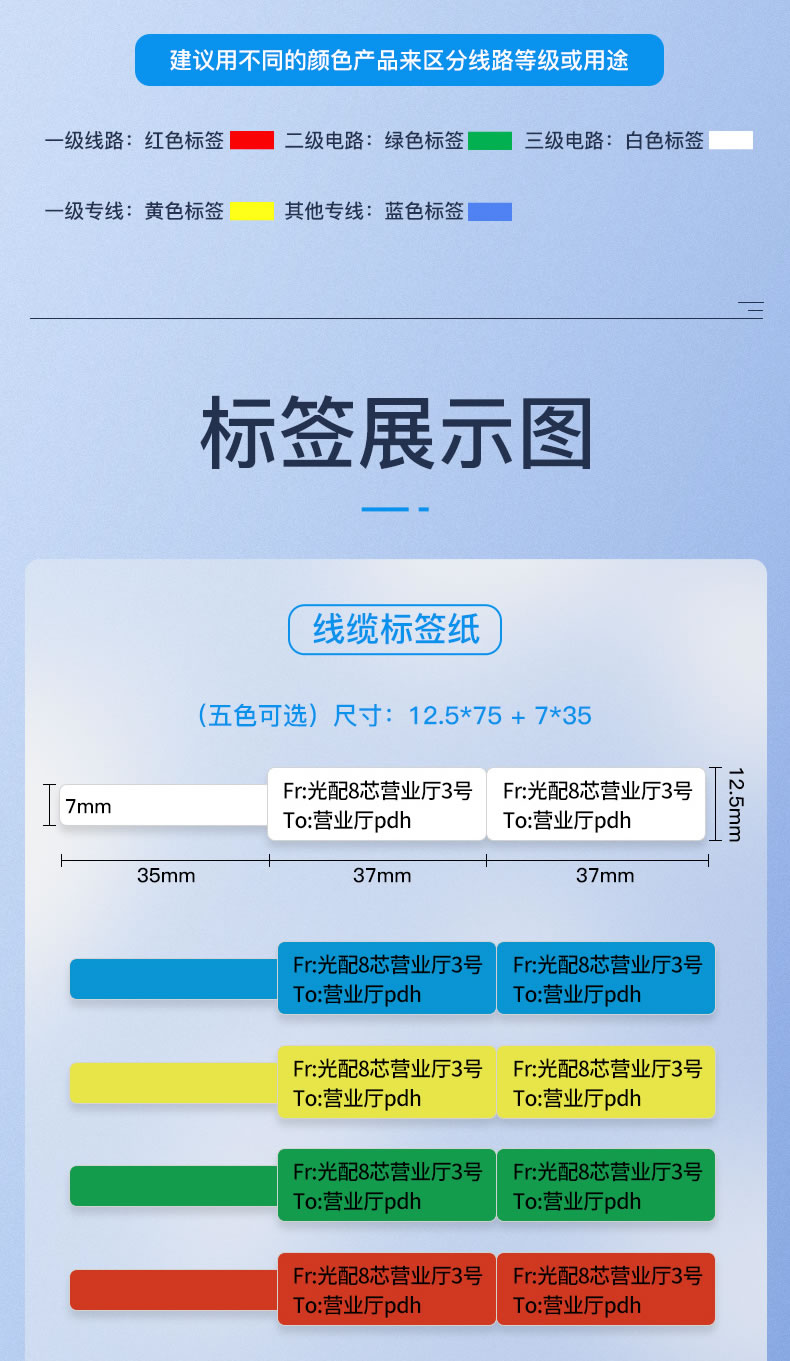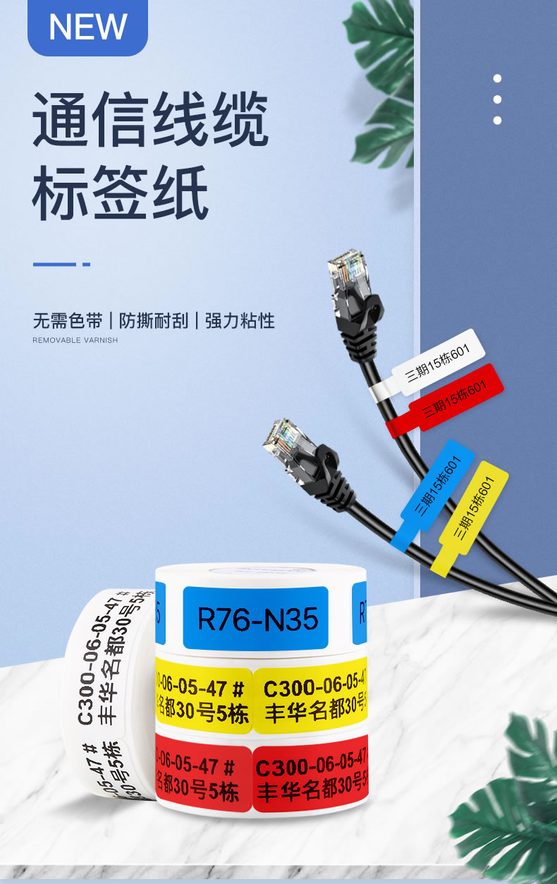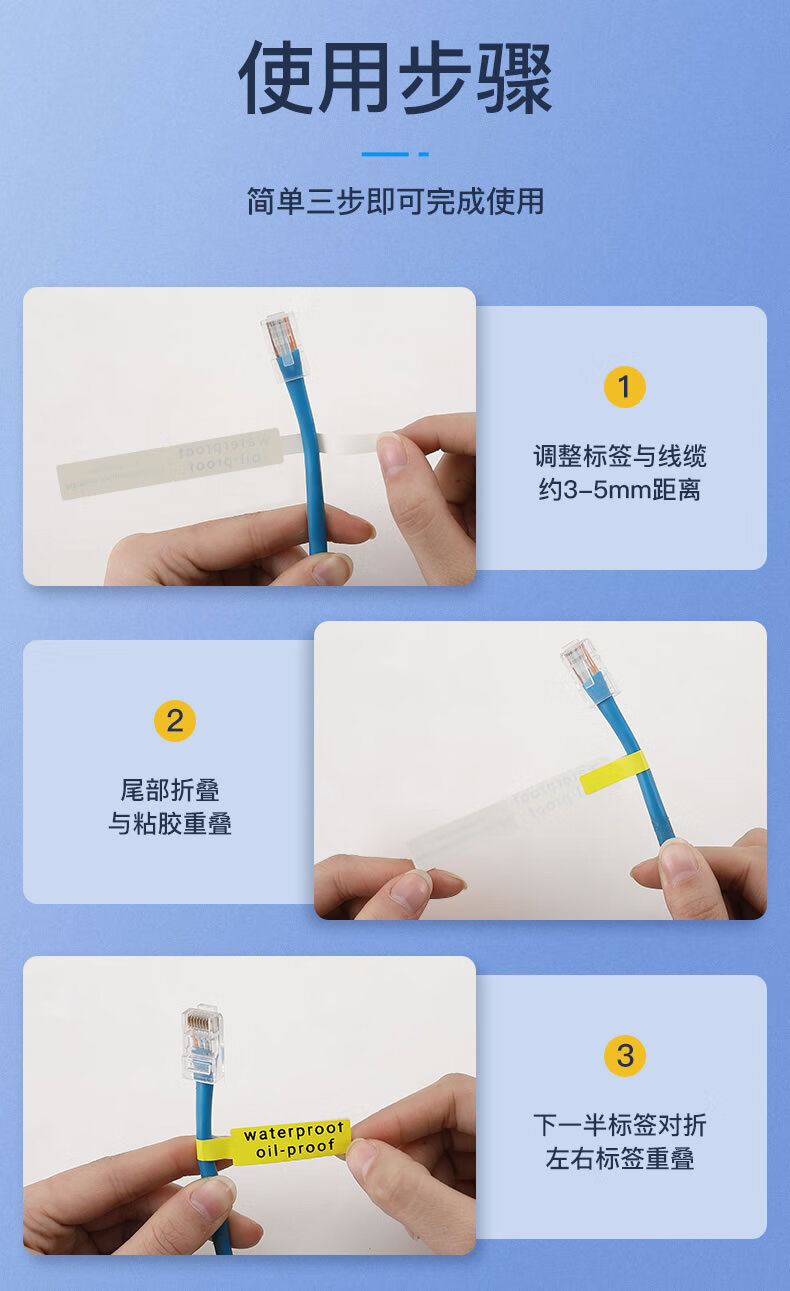 Jingchen D11 cable label printing paper self-adhesive P-type network cable computer room fiber optic thermal paper 12.5*109 yellow waterproof and oil-resistant tear-resistant and scratch-resistant