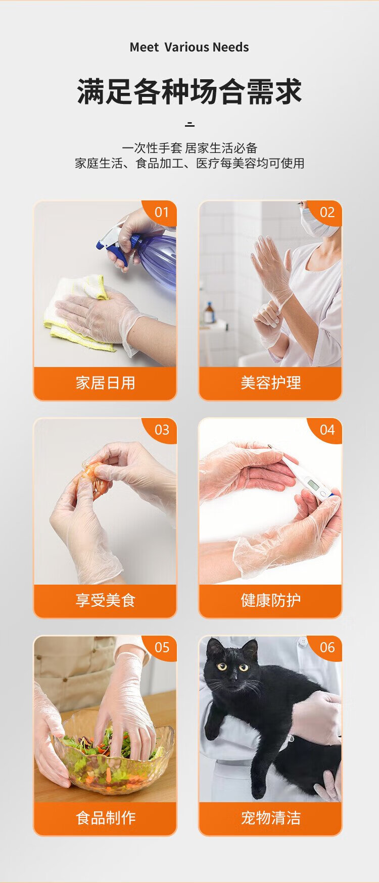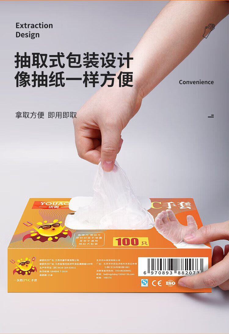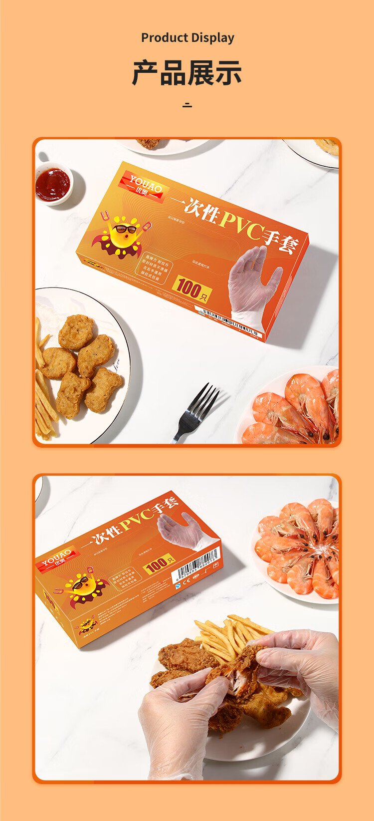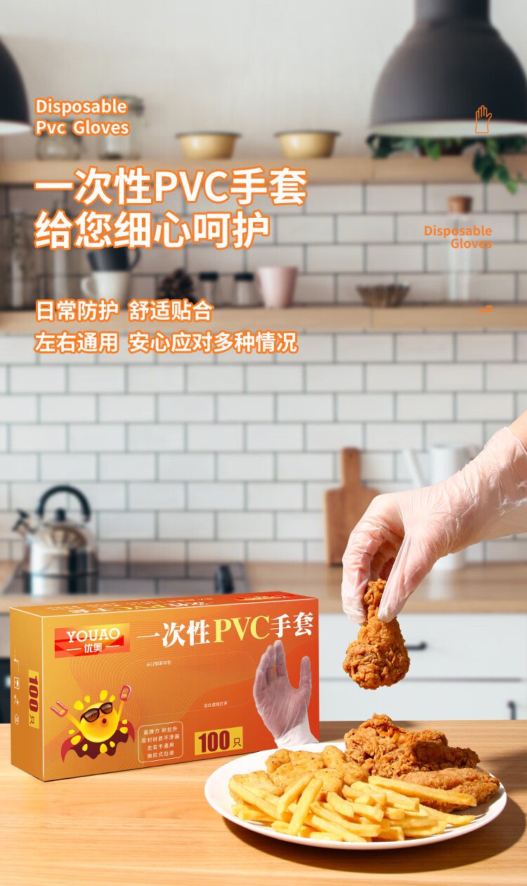 Youao disposable gloves PVC food grade thickened experimental beauty baking catering kitchen cleaning household 100 L size