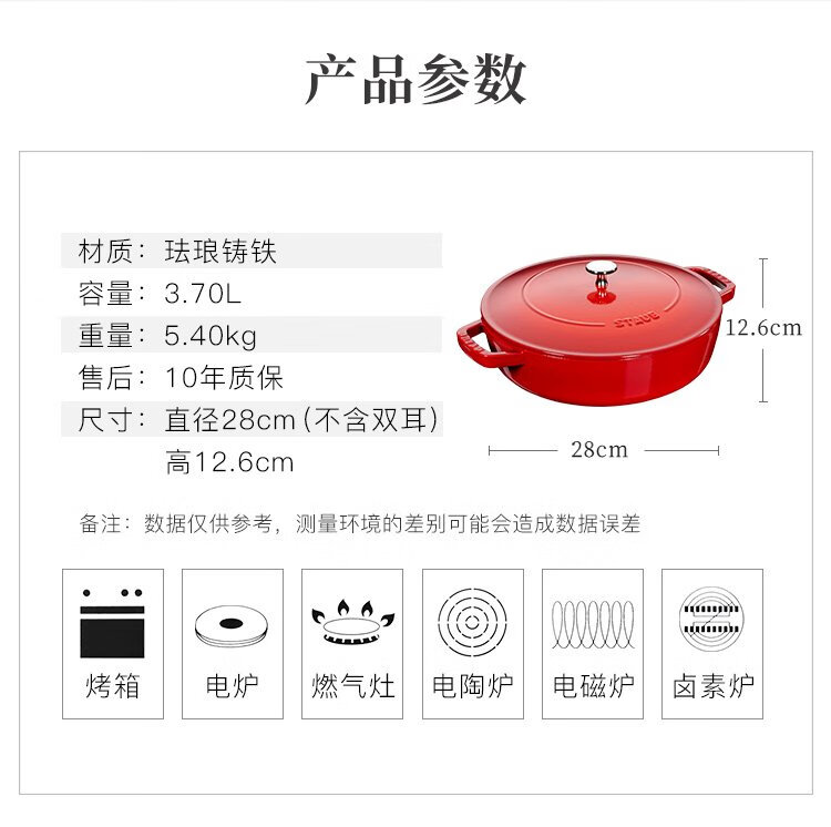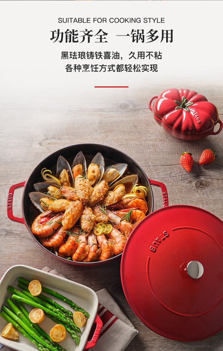 Staub French imported cyclone nail seafood pot double-ear soup cooking pot seafood pot cherry red 28cm 40511-474