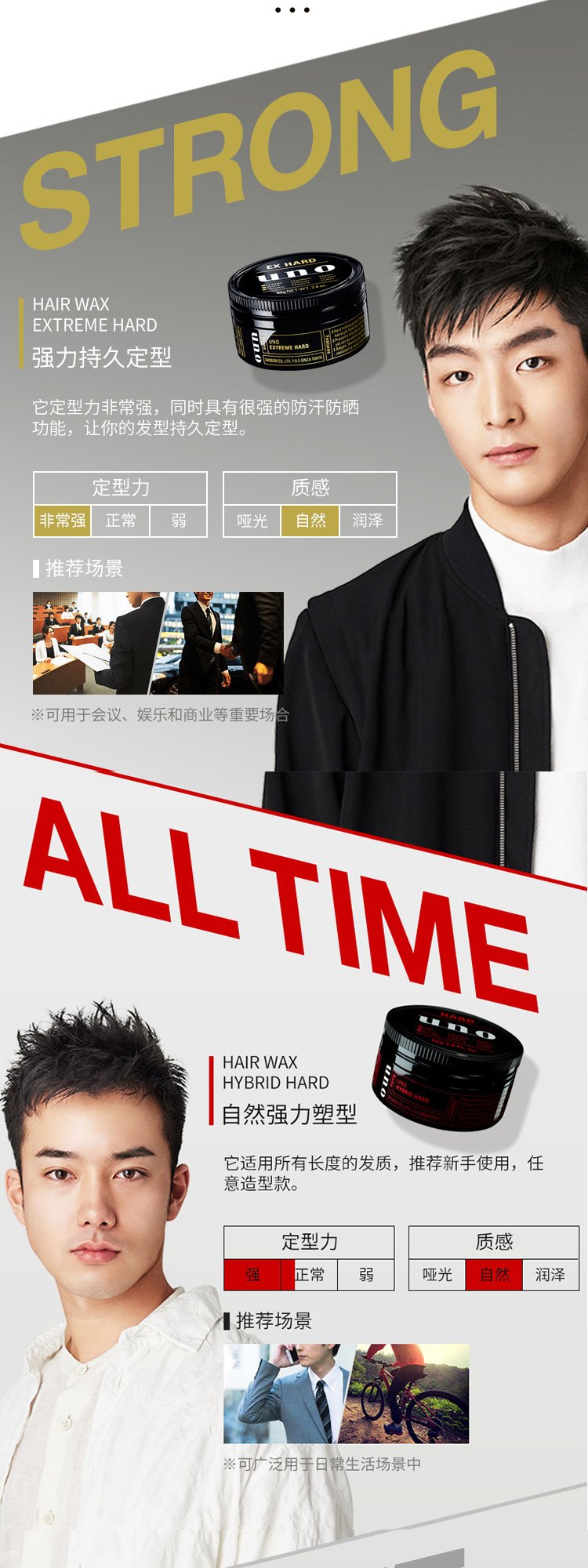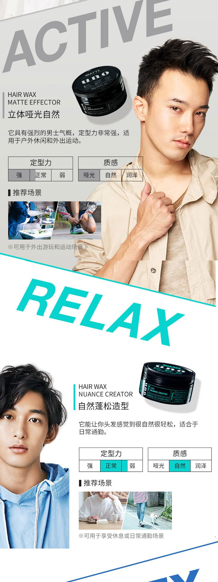 UNO Men's Styling Natural Powerful Shaping 80g Hair Wax Hair Cream Hair Shaping Imported from Japan