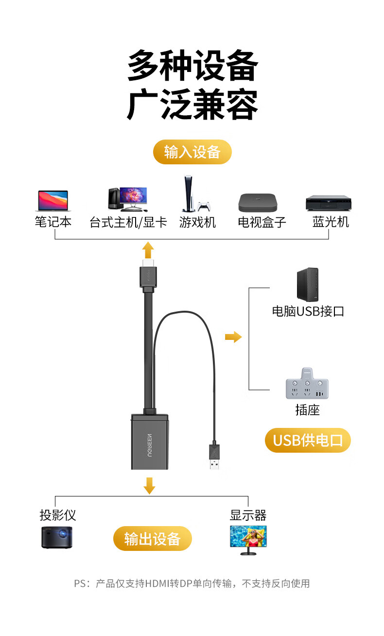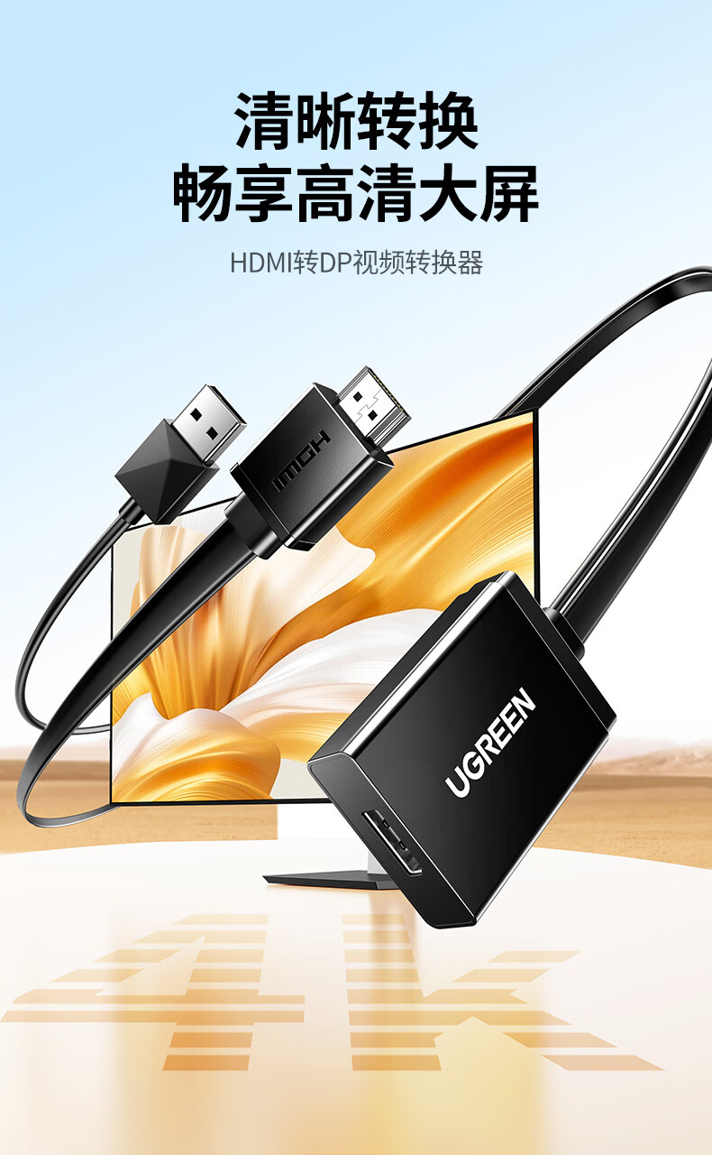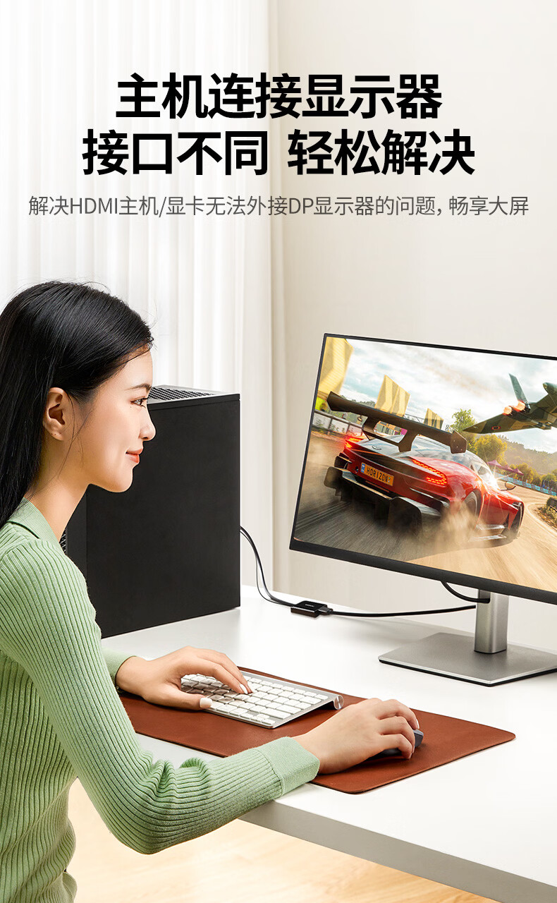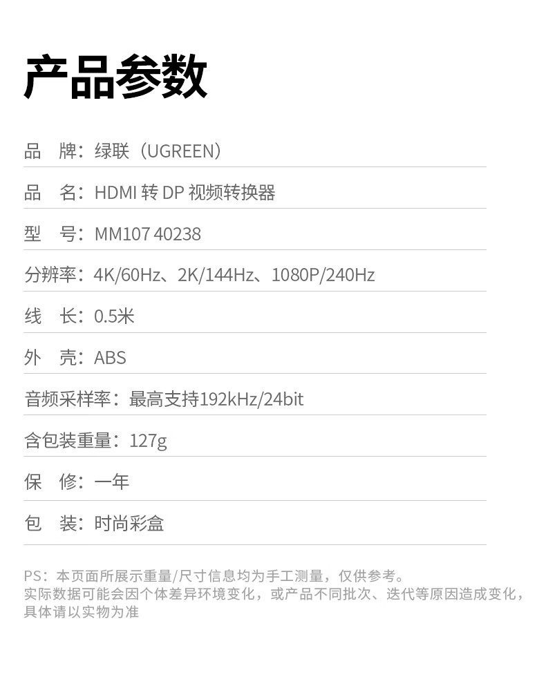 Greenlink HDMI2.0 to DP1.4 converter 4K60Hz HD video cable 240Hz high brush suitable for desktop laptop PS4 to monitor 0.5m 40238