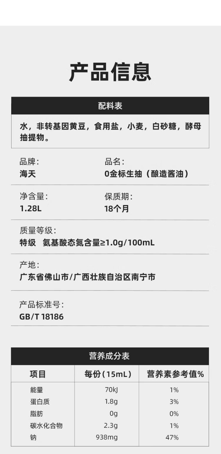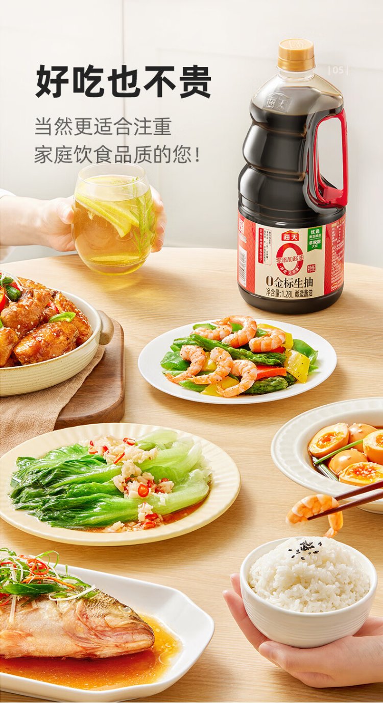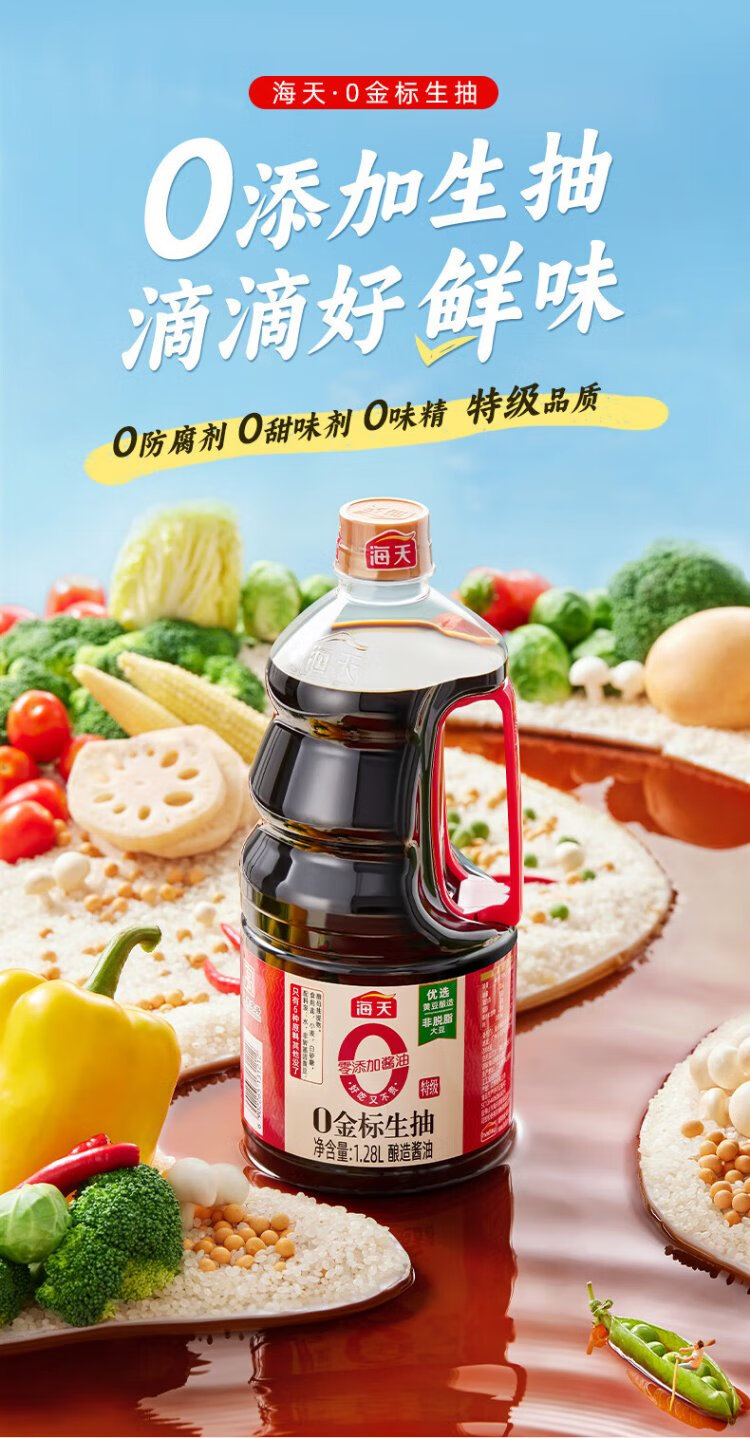 Haitian 0Gold Label Light Soy Sauce 1.28L*2 Premium Soy Sauce Gold Label Series 0Added Preservatives