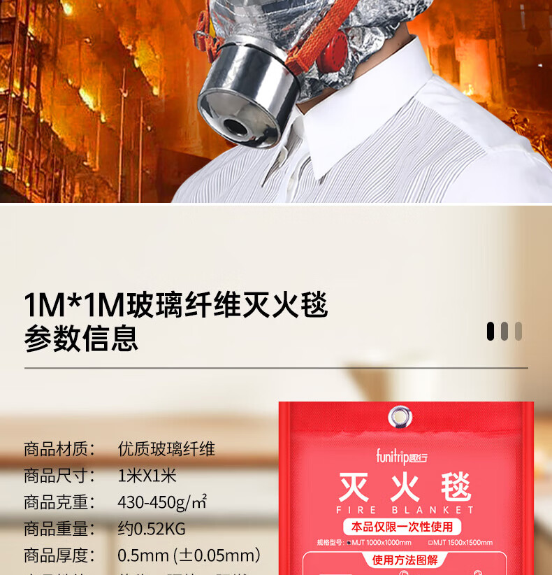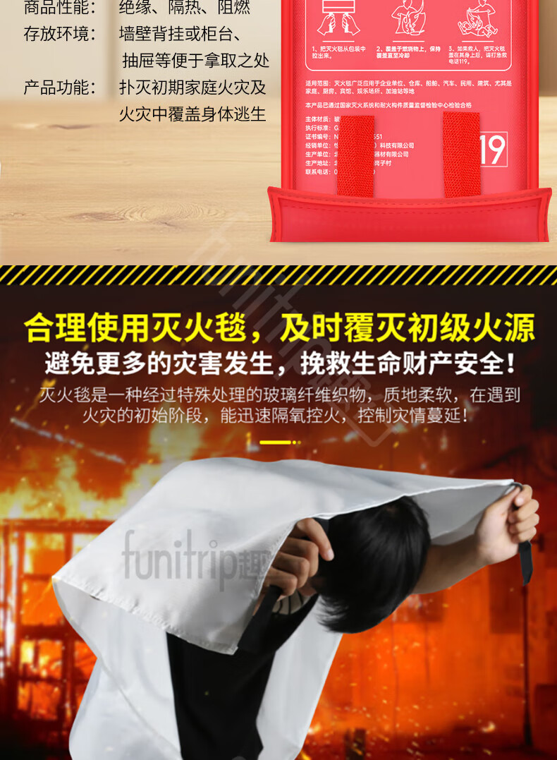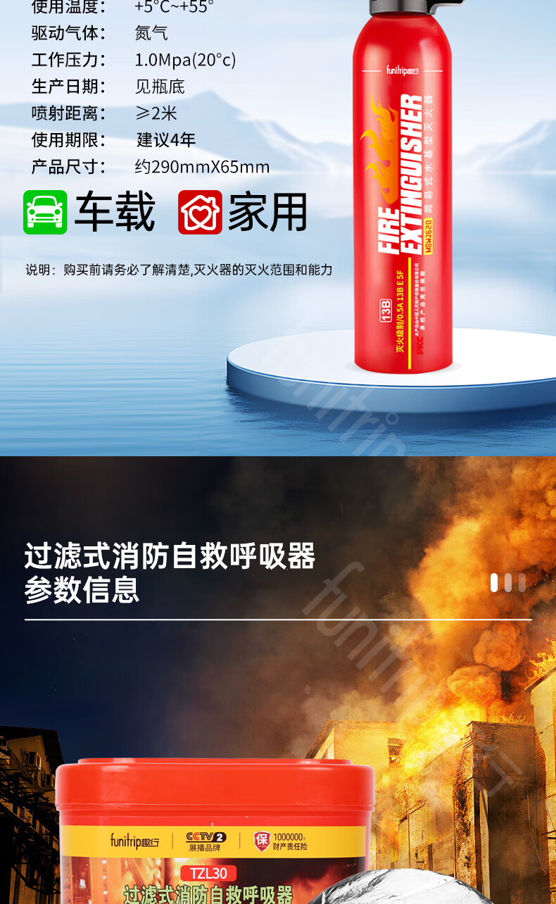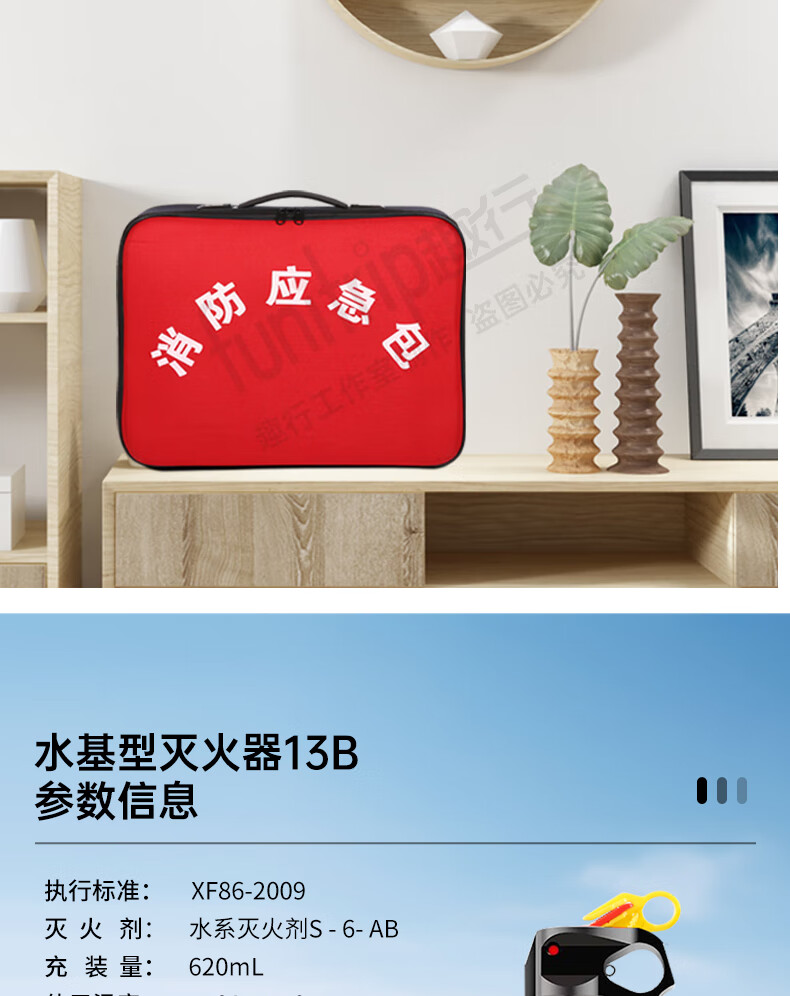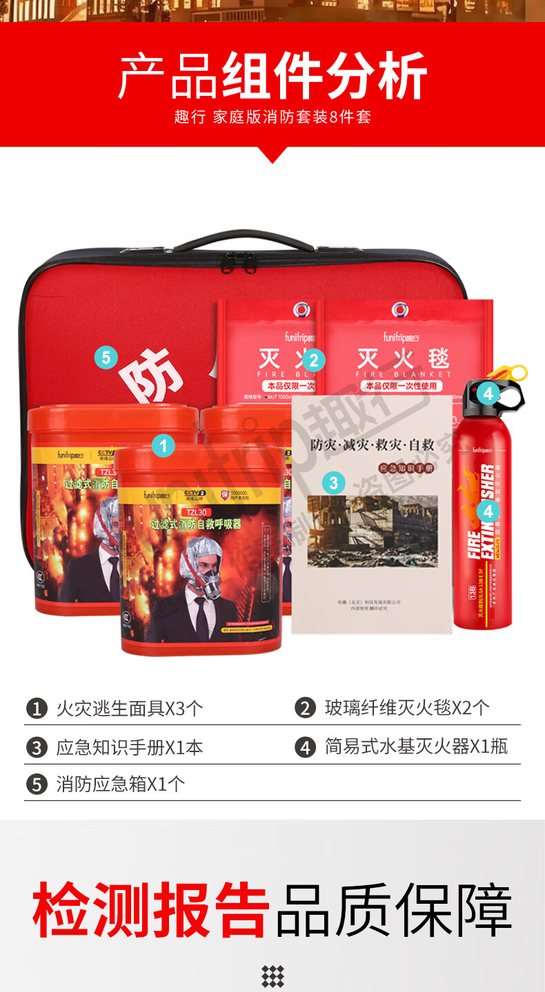 Quxing Fire Fighting Set Emergency Rescue Kit Gas Mask Fire Extinguishing Blanket Fire Extinguisher Fire Self-Rescue Escape 8 Pieces XF10