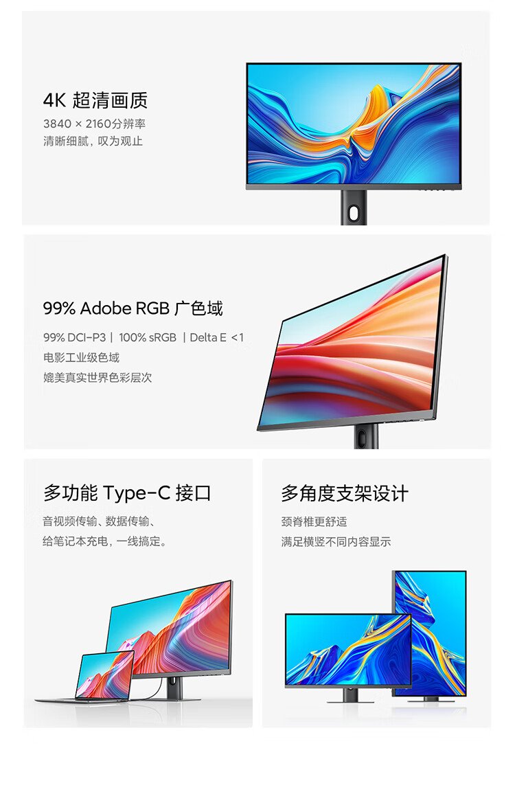 80% new Xiaomi 27-inch 4K ultra-clear IPS technology 99% Adobe RGB HDR400 Type-C 90W reverse charging lifting and rotating stand computer office monitor