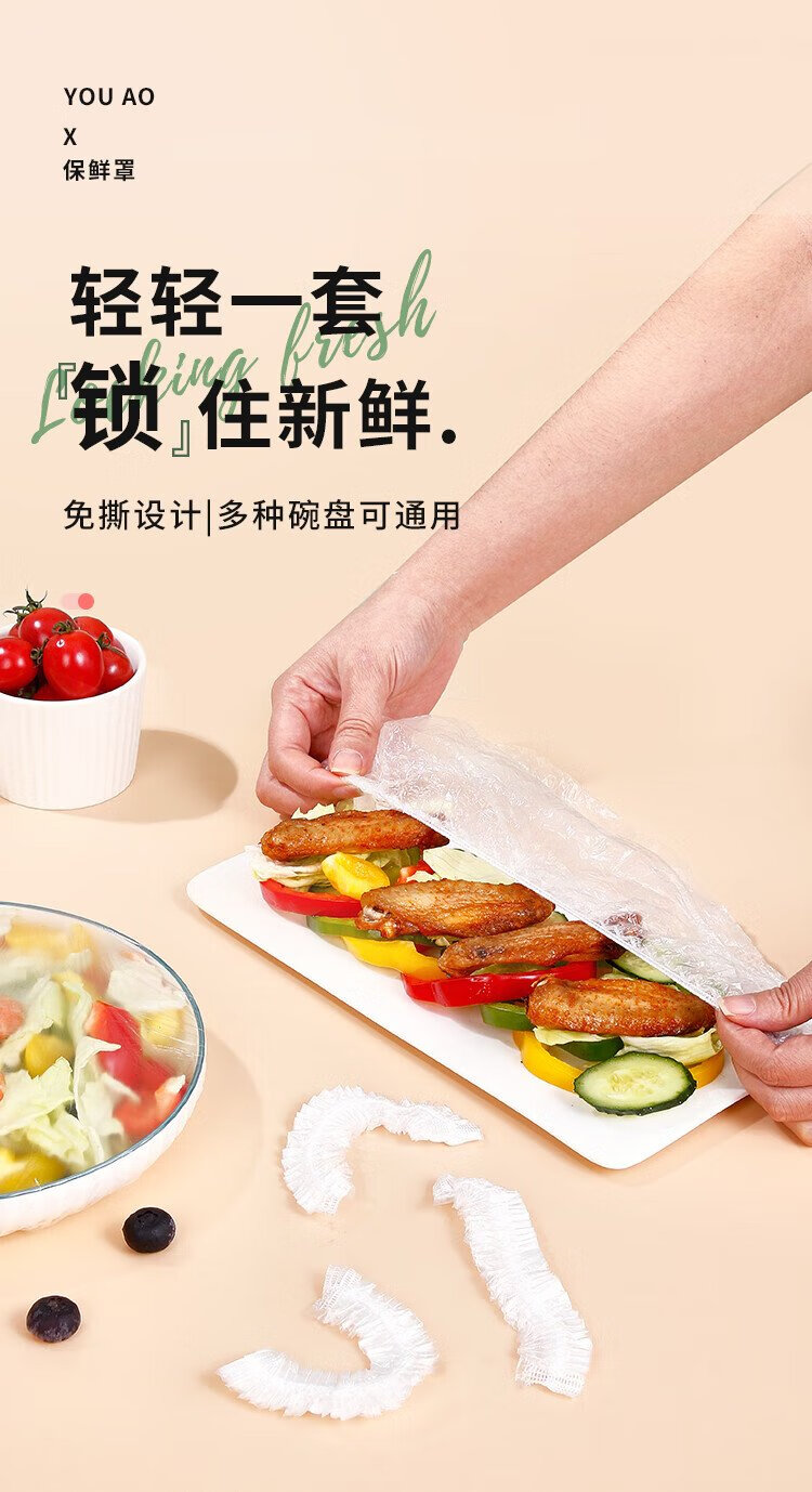 Youao disposable cling film sets, 400 pieces, food-grade leftover elastic mouth covers, vegetable bowls and plates, fresh-keeping bags
