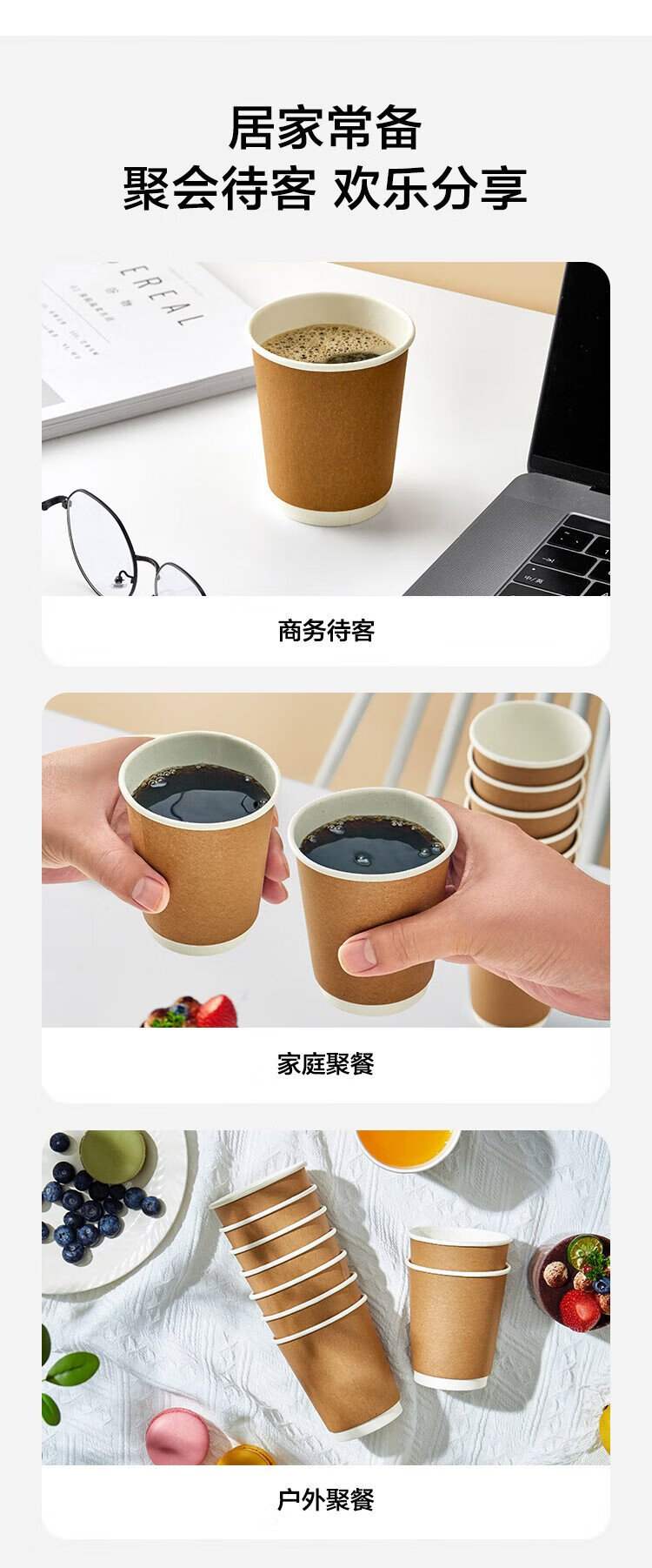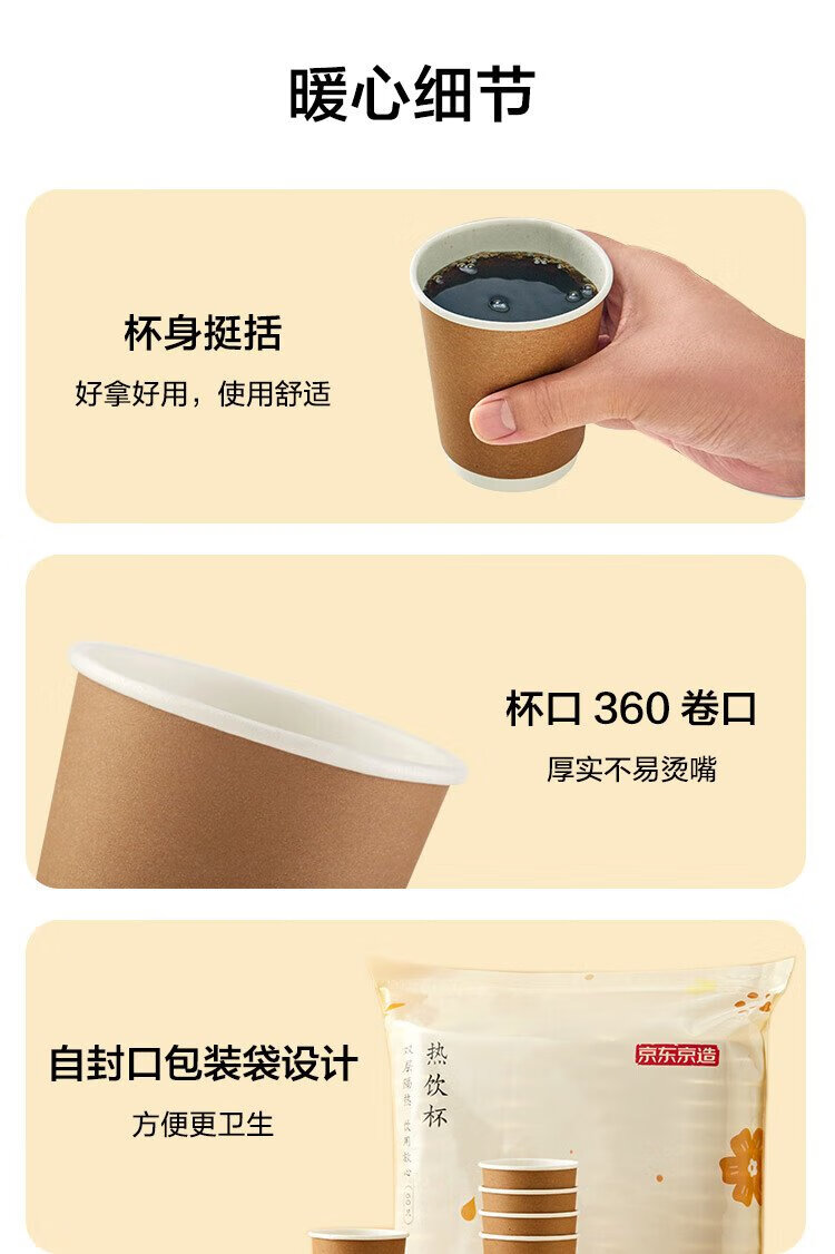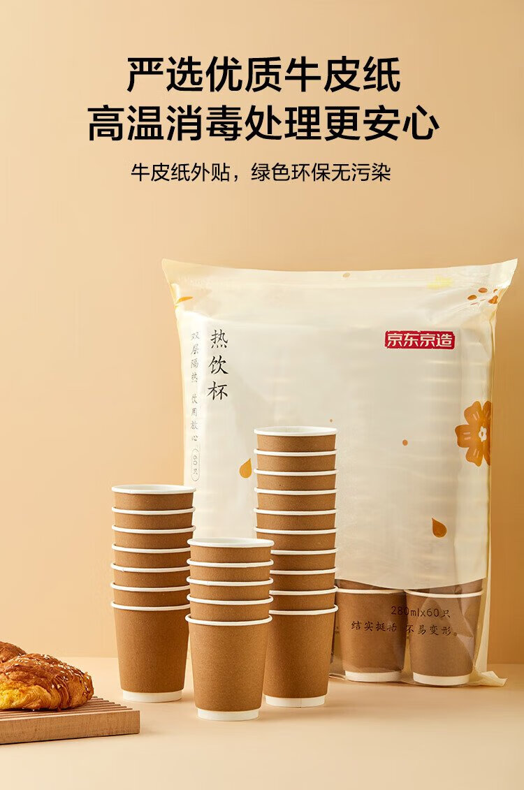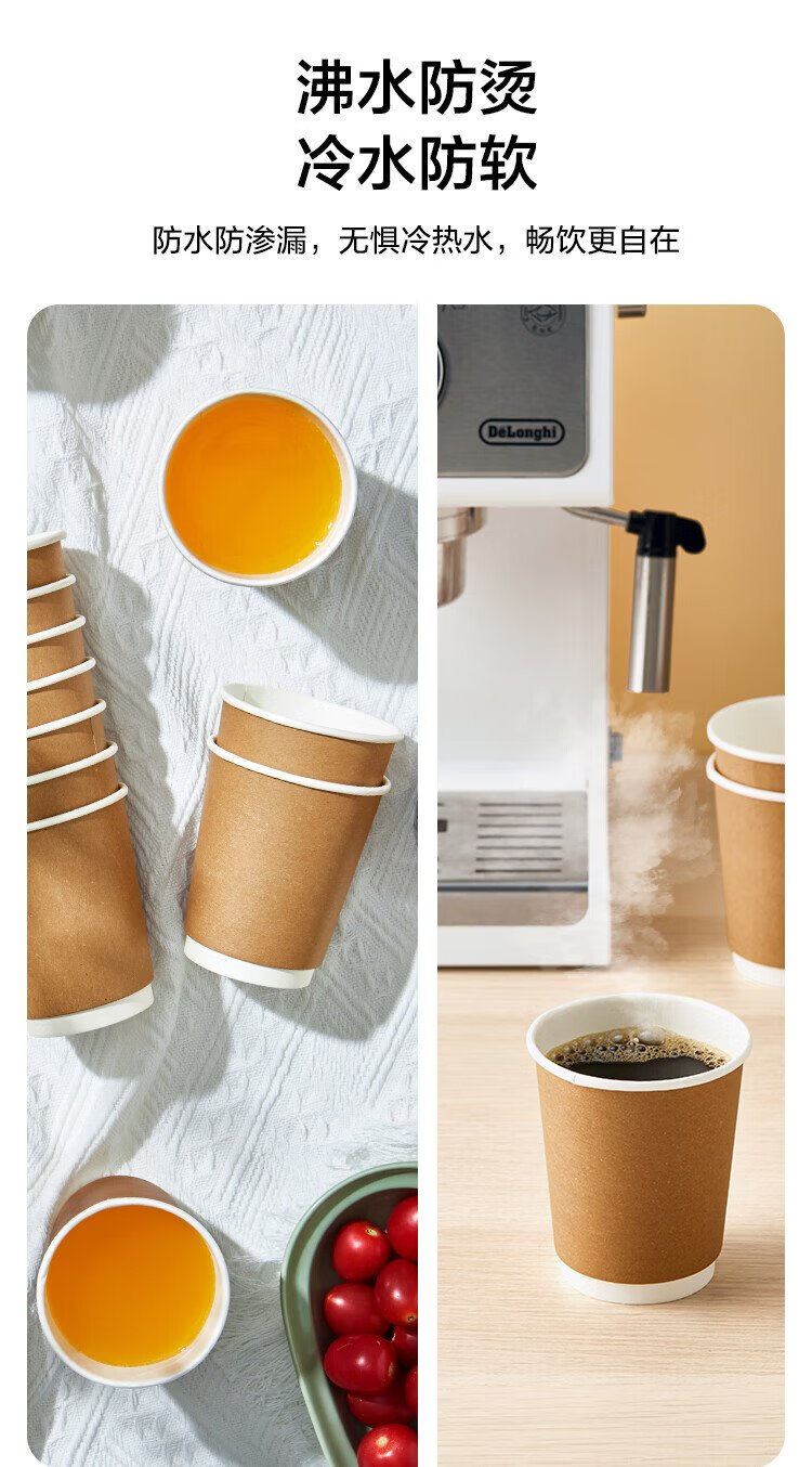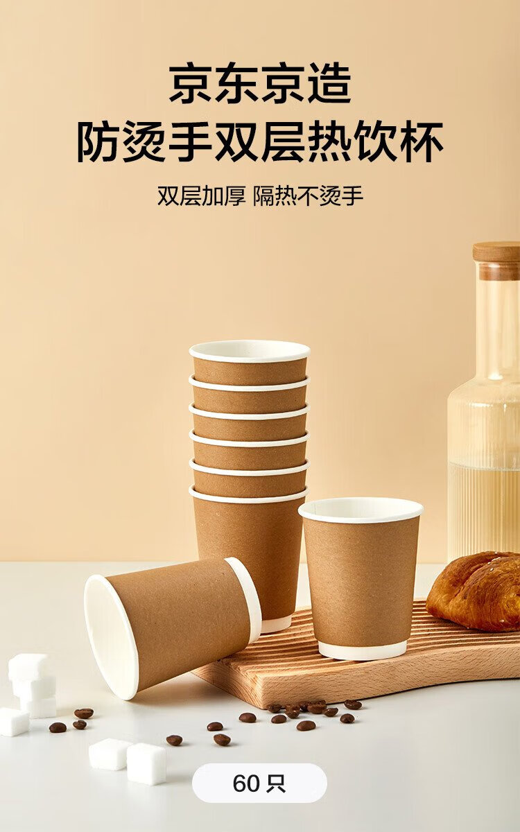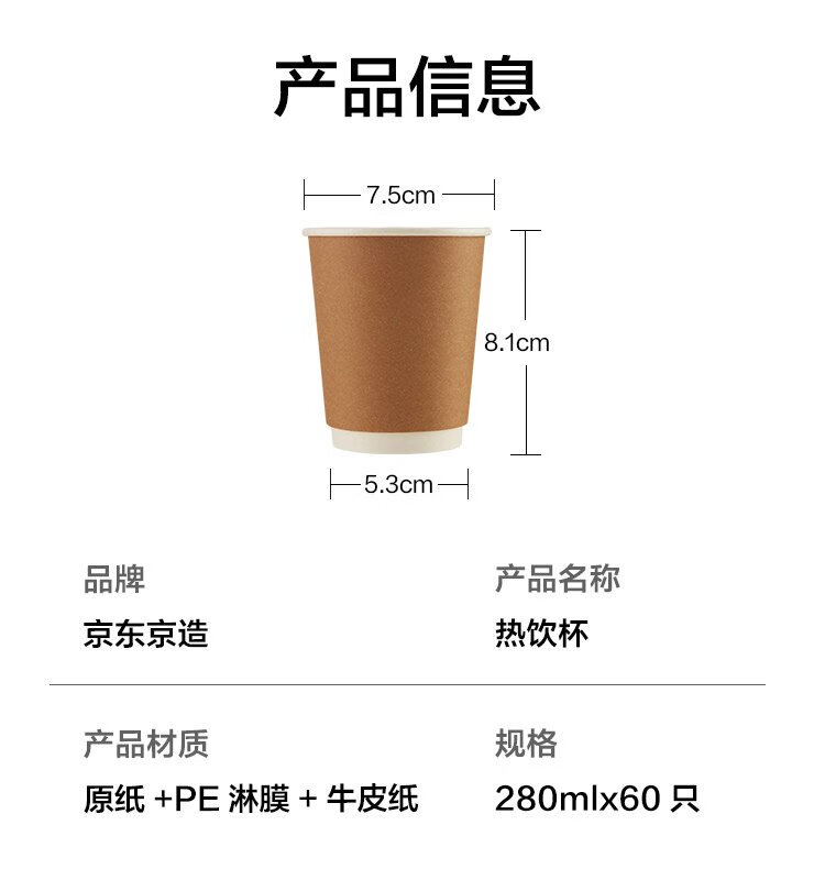 Made in Tokyo, paper cups, disposable cups, coffee cups, kraft paper double-layer thickened food-grade water cups, 280ml, 60 pieces