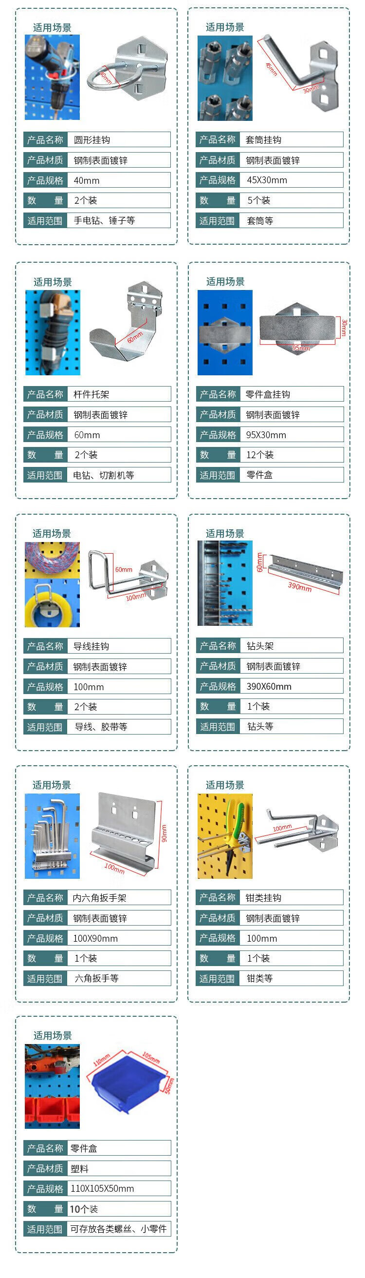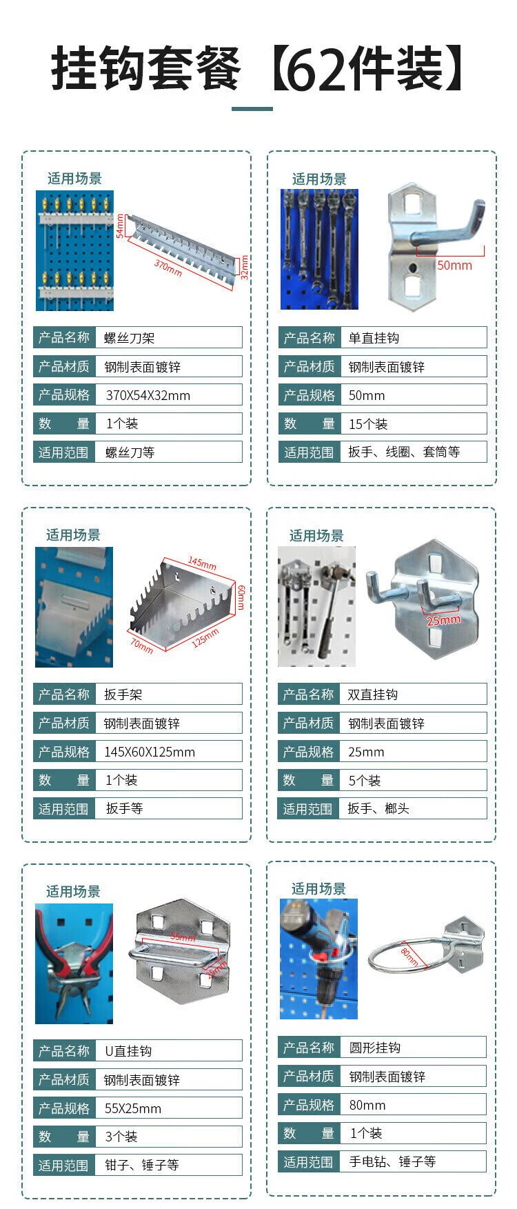 Huizhen Tool Hook Set Hardware Tool Rack Wall Perforated Board Display Rack Accessories 62-piece Pack HG905 Customizable