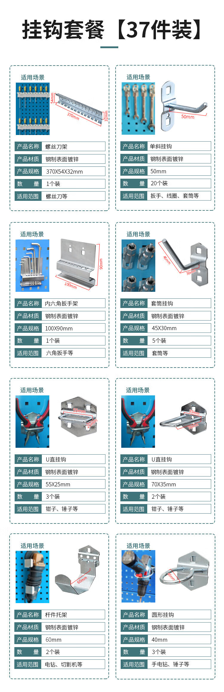 Huizhen tool hook set square hole hole board display rack tool rack storage hanging board accessories 37 pieces HG904 can be customized