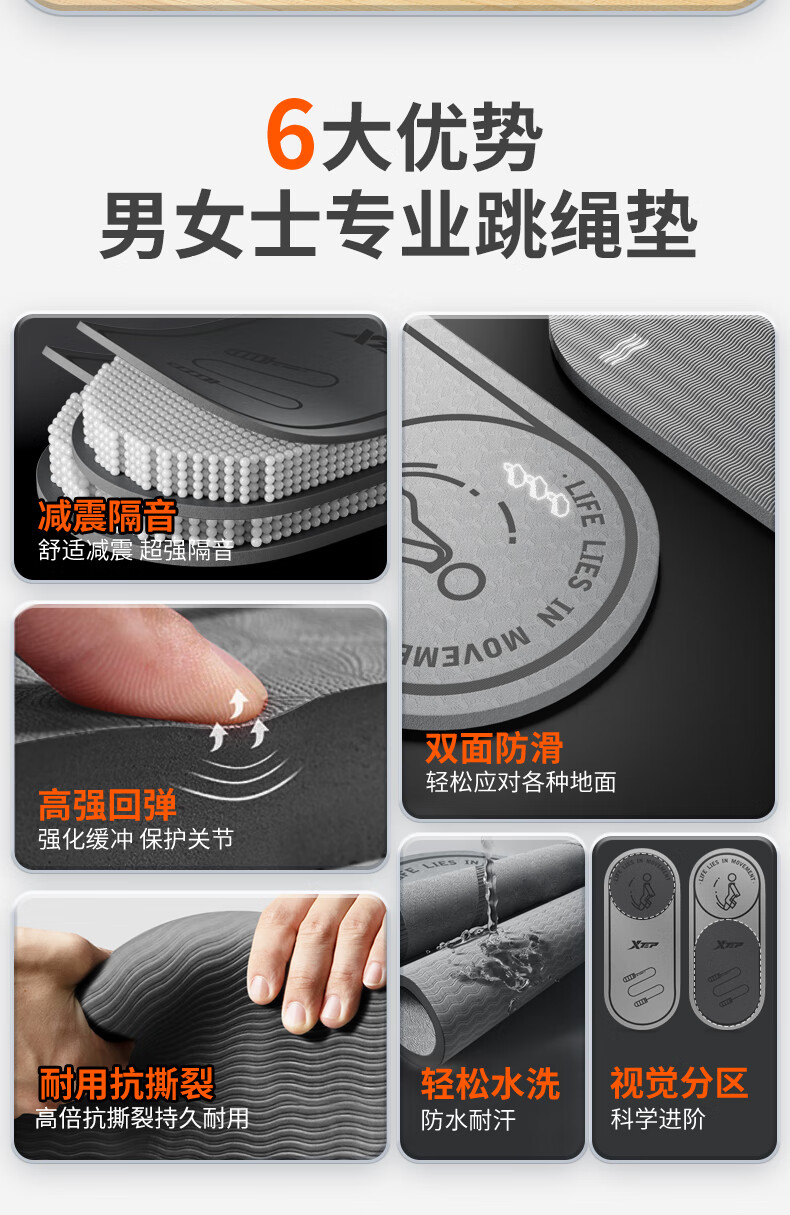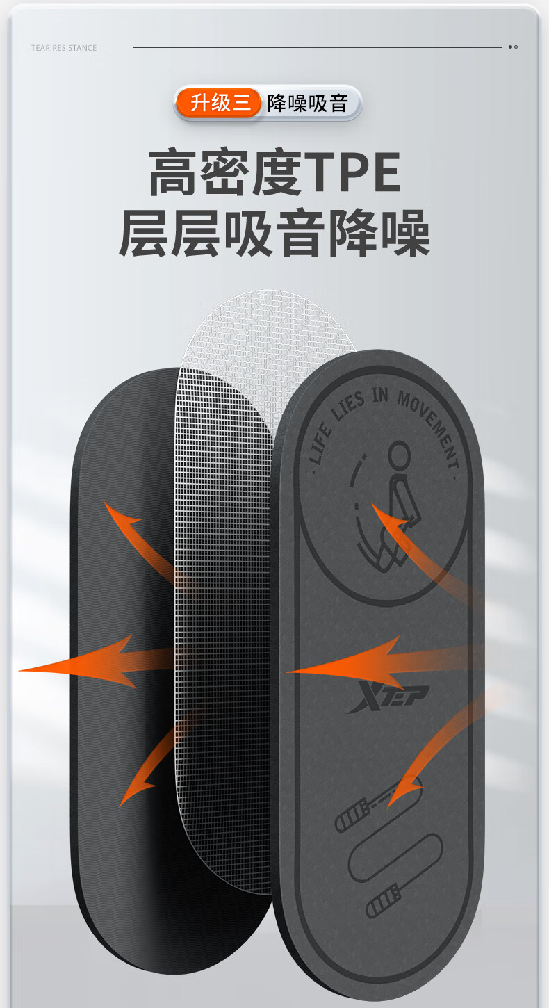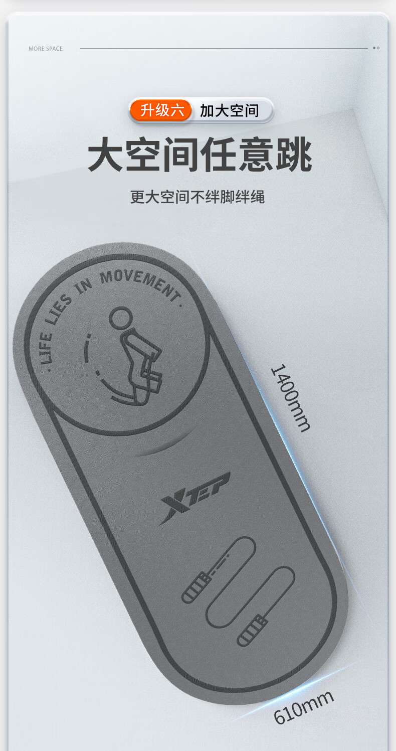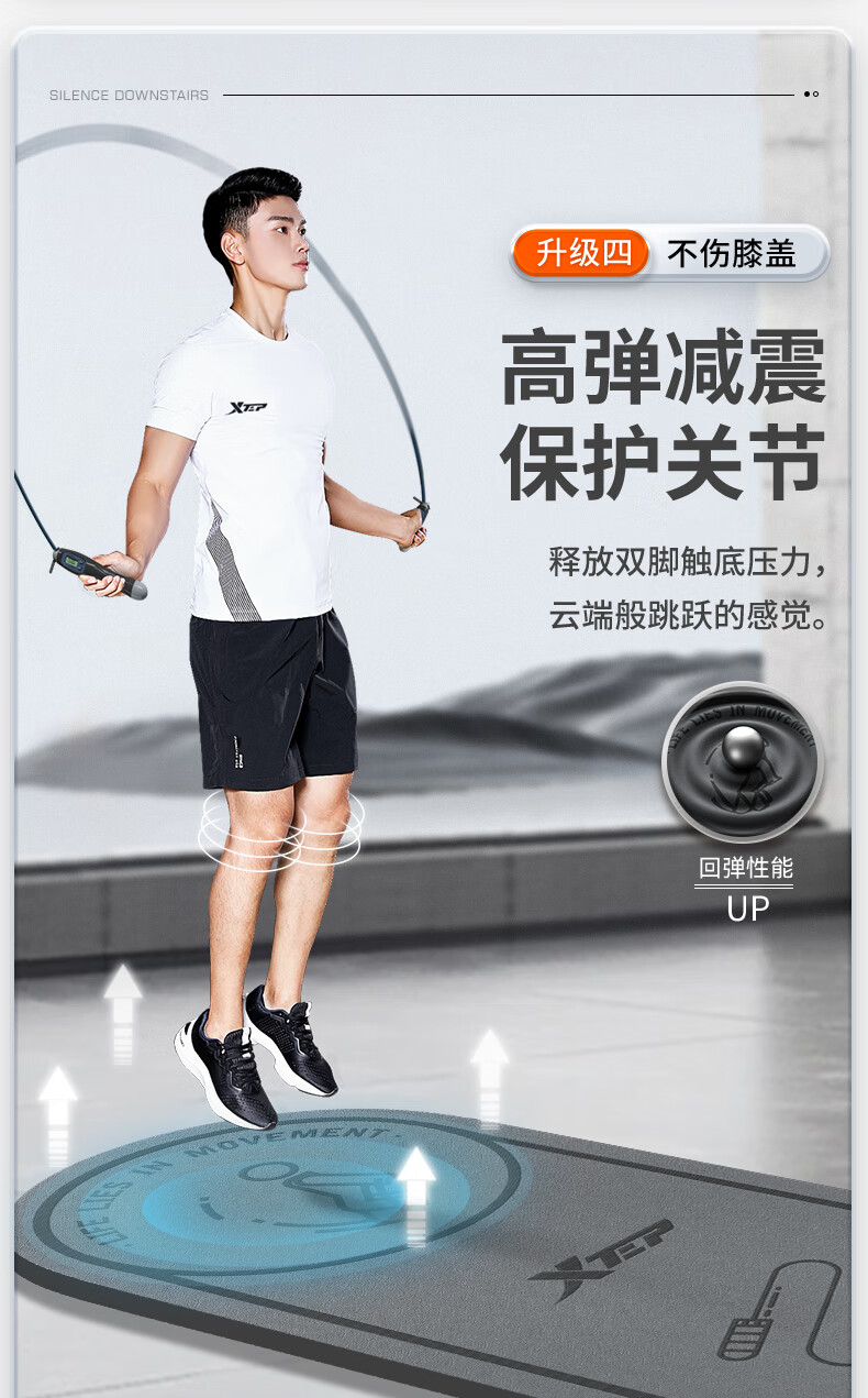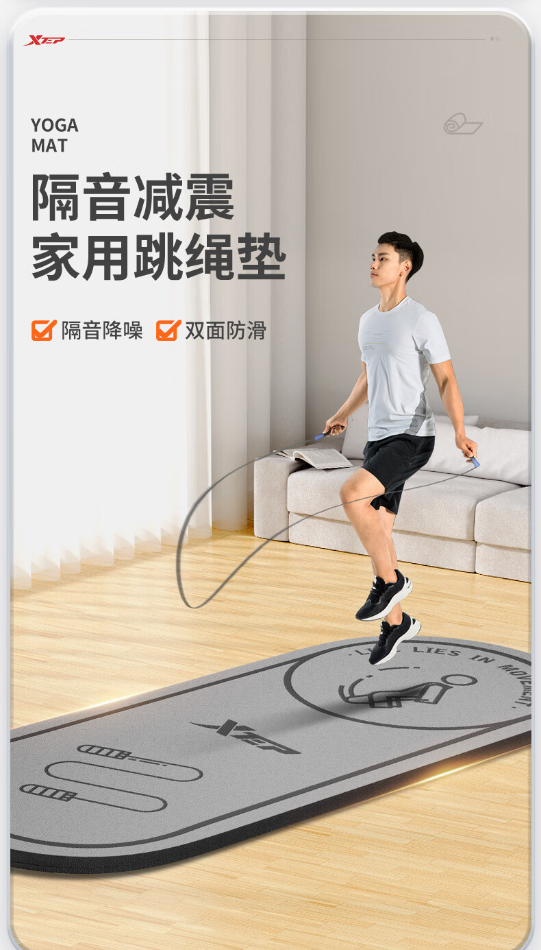 XTEP jump rope mat, yoga soundproof and shock-absorbing mat, silent indoor fitness non-slip buffer mat, ropeless jump exercise mat, floor mat and blanket