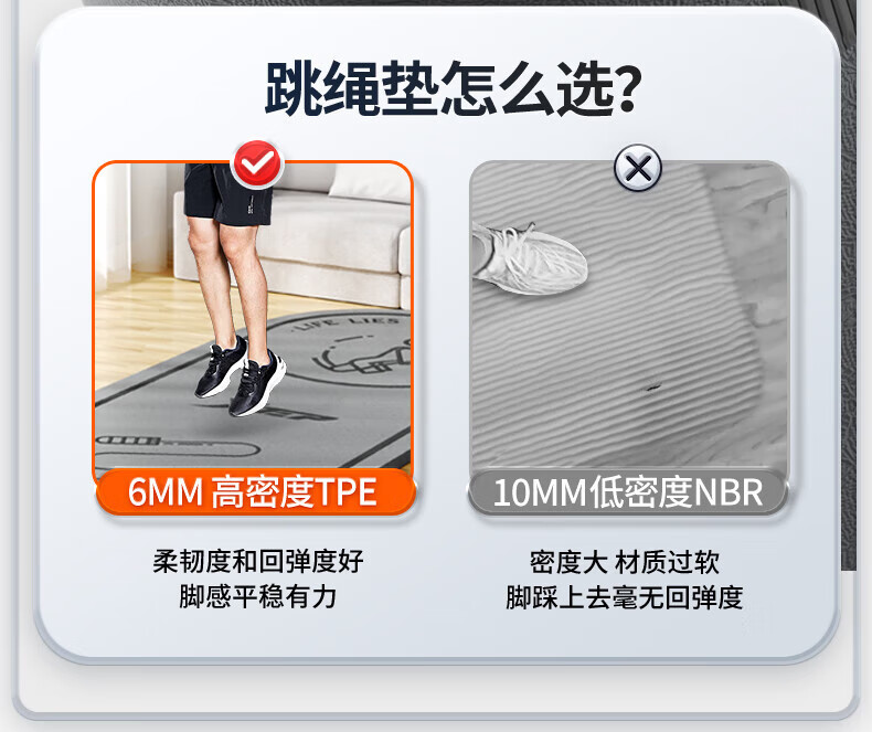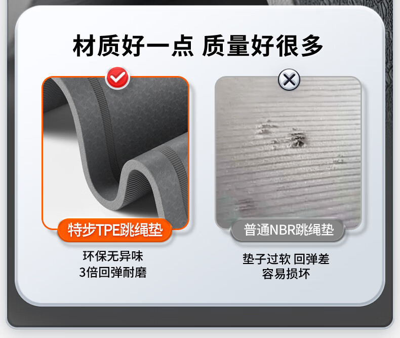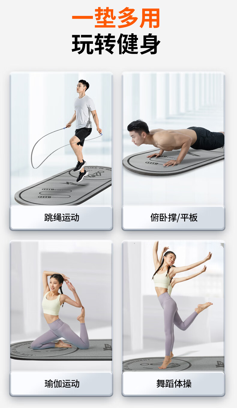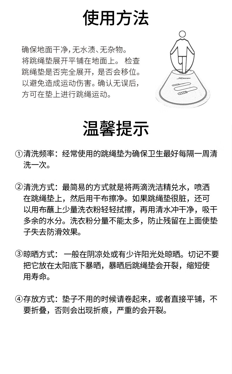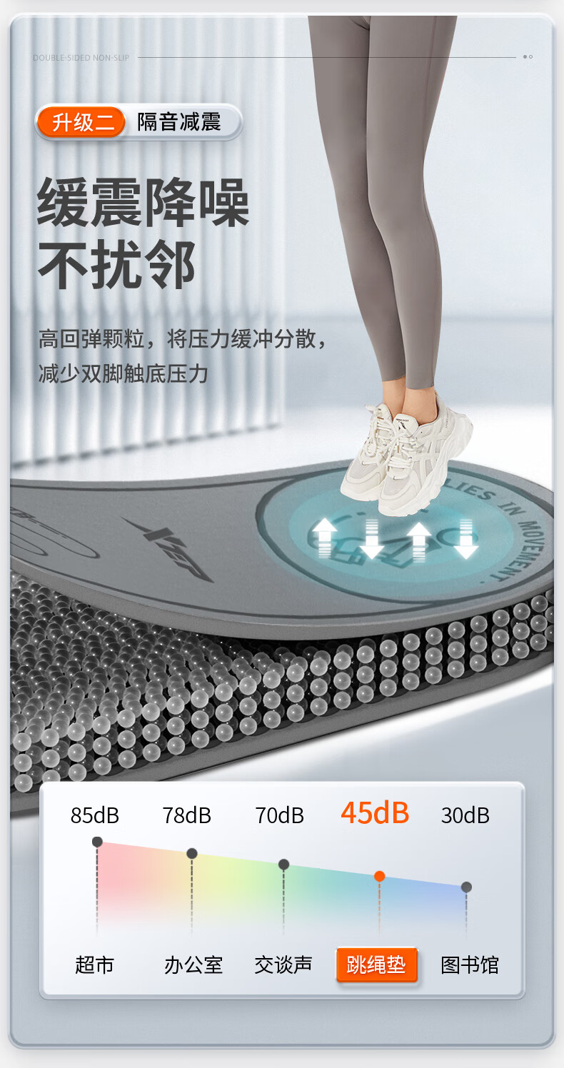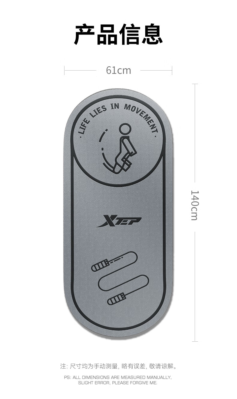 XTEP jump rope mat, yoga soundproof and shock-absorbing mat, silent indoor fitness non-slip buffer mat, ropeless jump exercise mat, floor mat and blanket