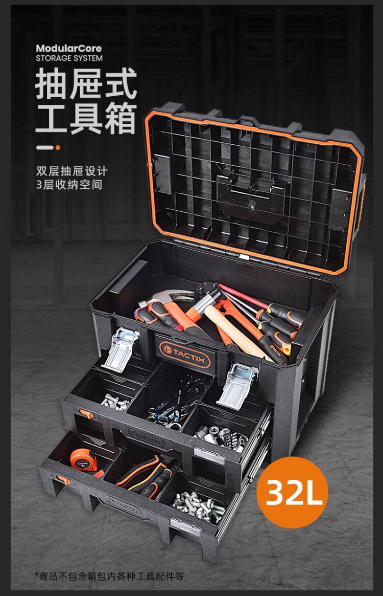 Tactix two-layer drawer tool box heavy-duty stacking combination accessories storage box thickened hardware industrial household 320362