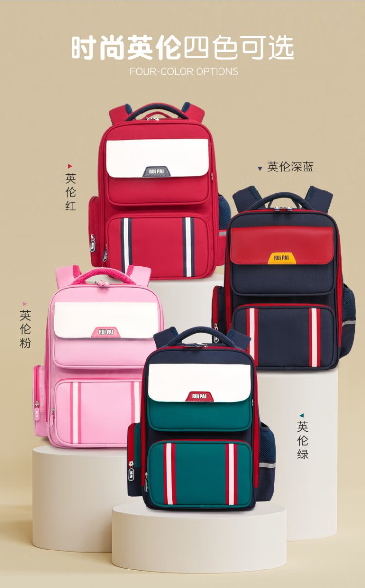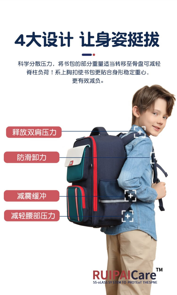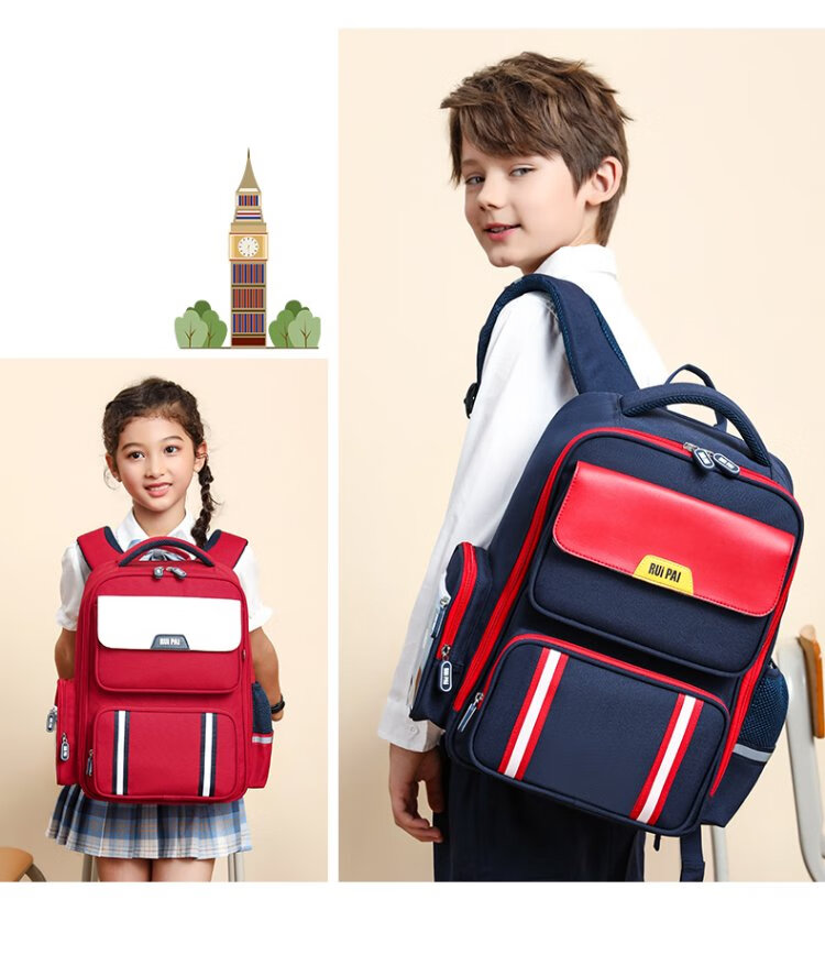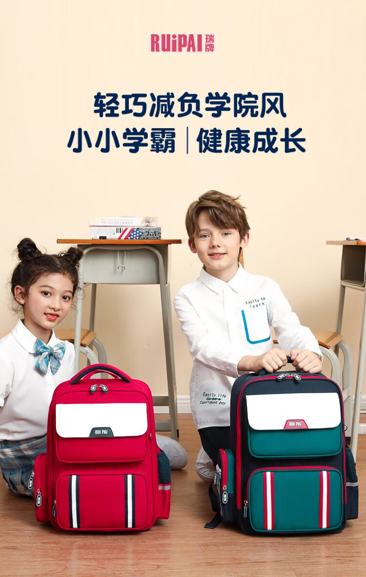 Ruipai (RUiPAi) elementary school schoolbags for boys and girls in grades 1-3-6, organ-style compartments to reduce burden and protect children's spine