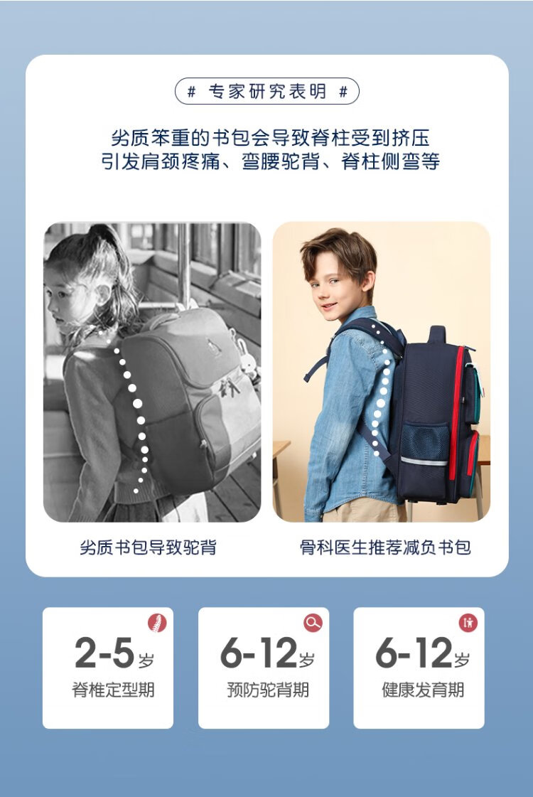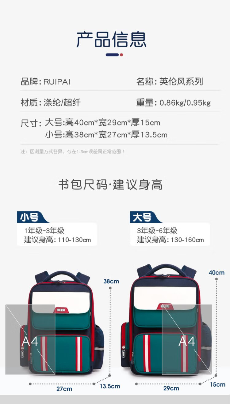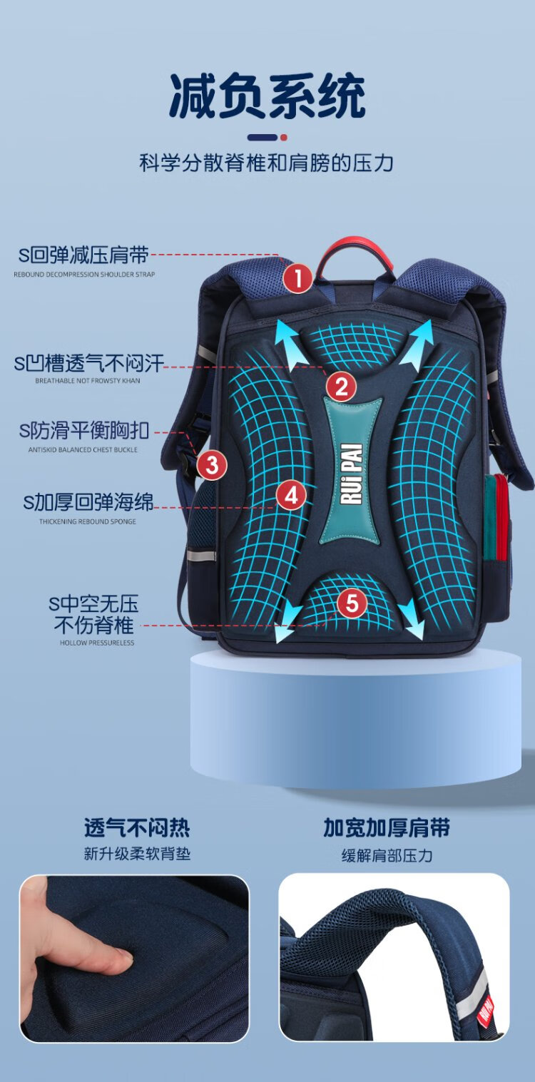 Ruipai (RUiPAi) elementary school schoolbags for boys and girls in grades 1-3-6, organ-style compartments to reduce burden and protect children's spine