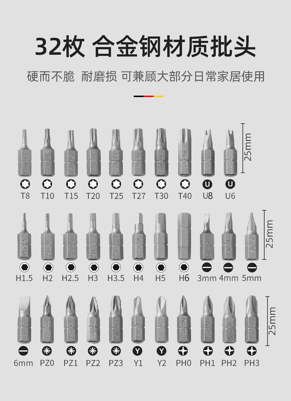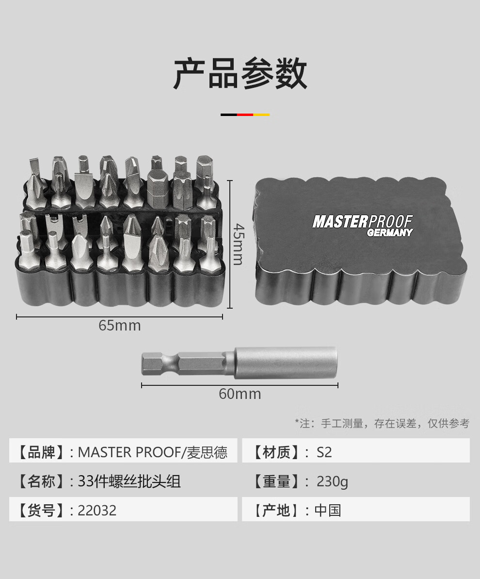 MASTERPROOF screwdriver bit set, strong magnetic and super hard one-word cross hexagonal electric drill driver, small screwdriver set
