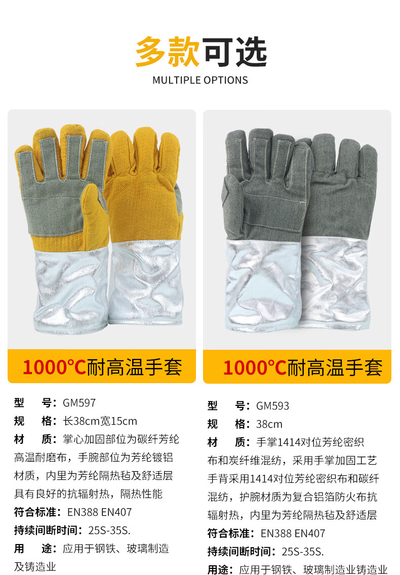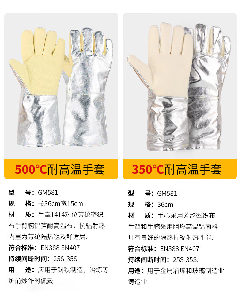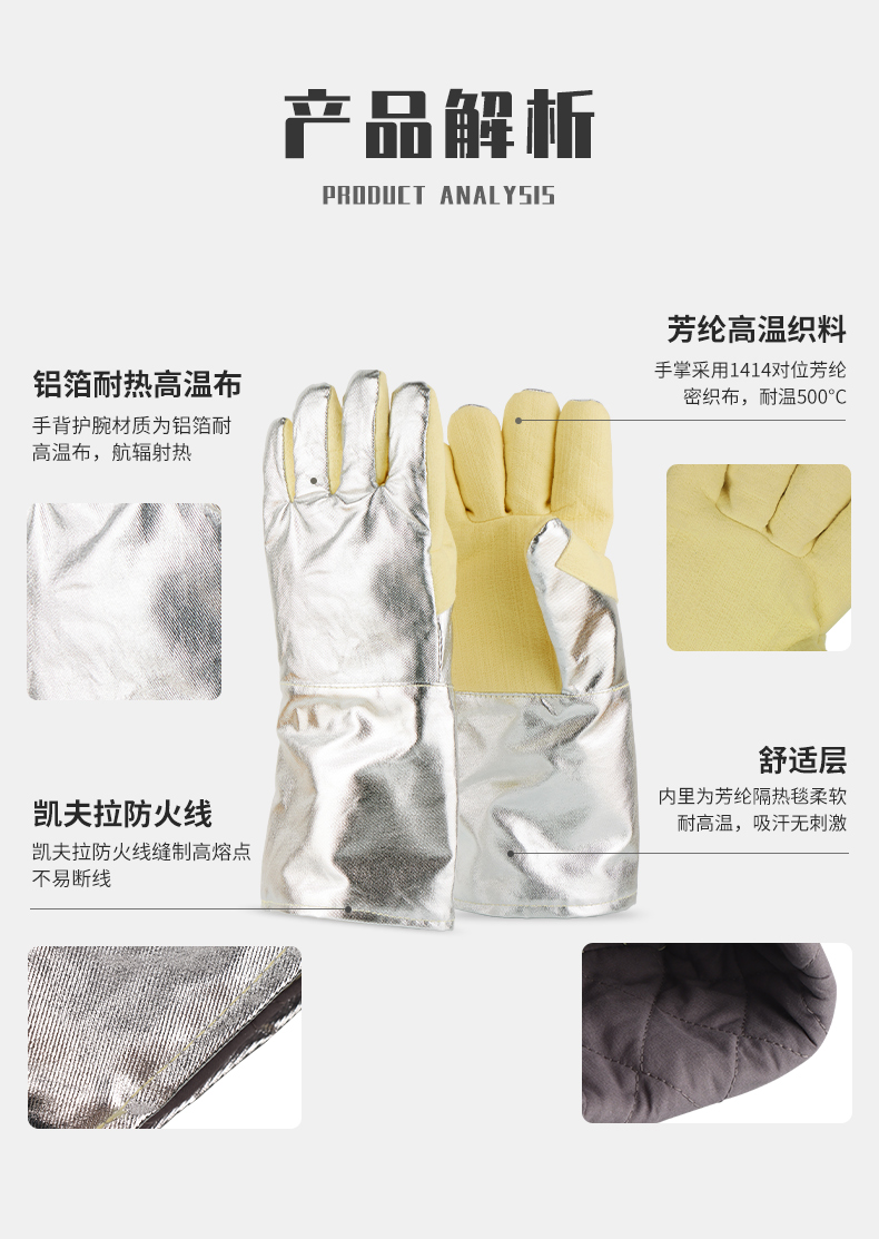 Golmud high temperature resistant gloves, aluminum foil insulation 350 degrees, thickened oven anti-scalding, flame retardant, fireproof microwave oven labor protection gloves GM581