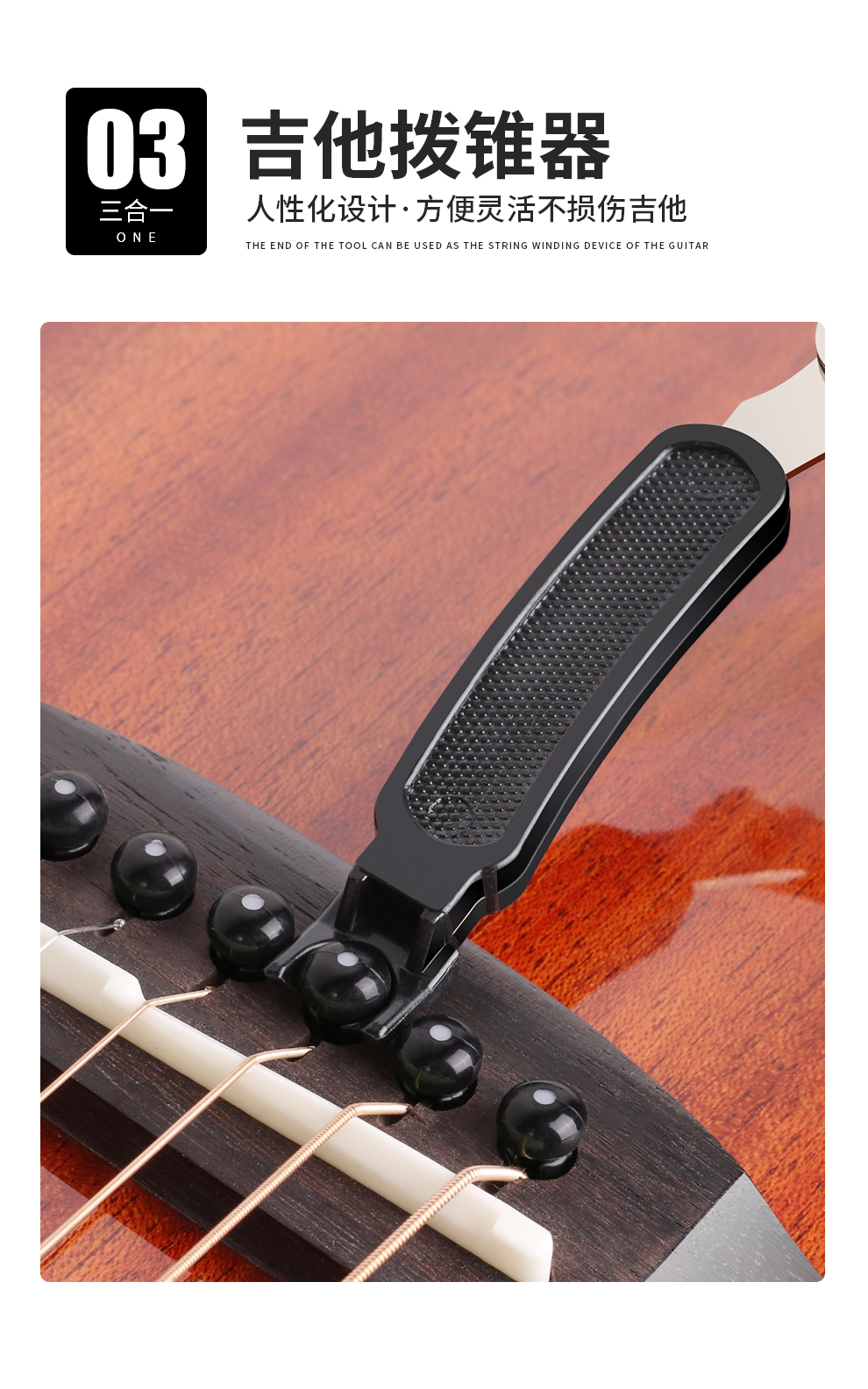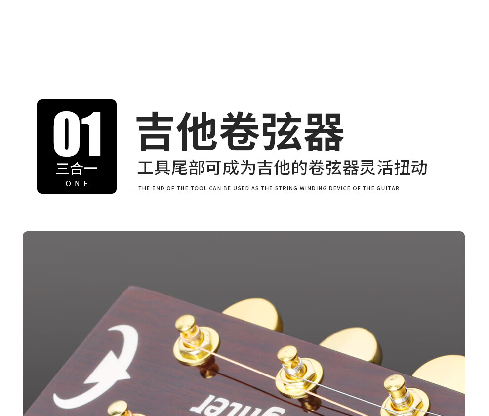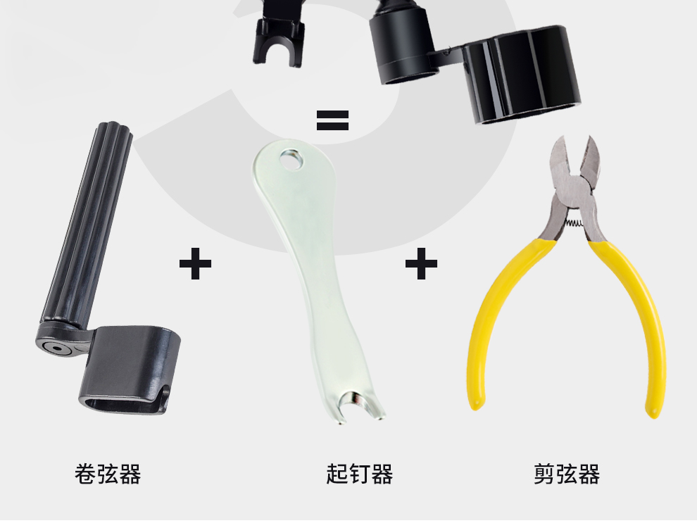 Bullfighter guitar tuner, universal stringing/starting/string changing tool