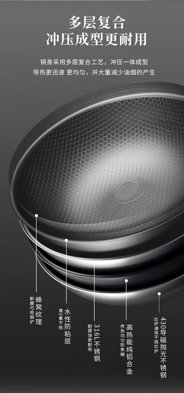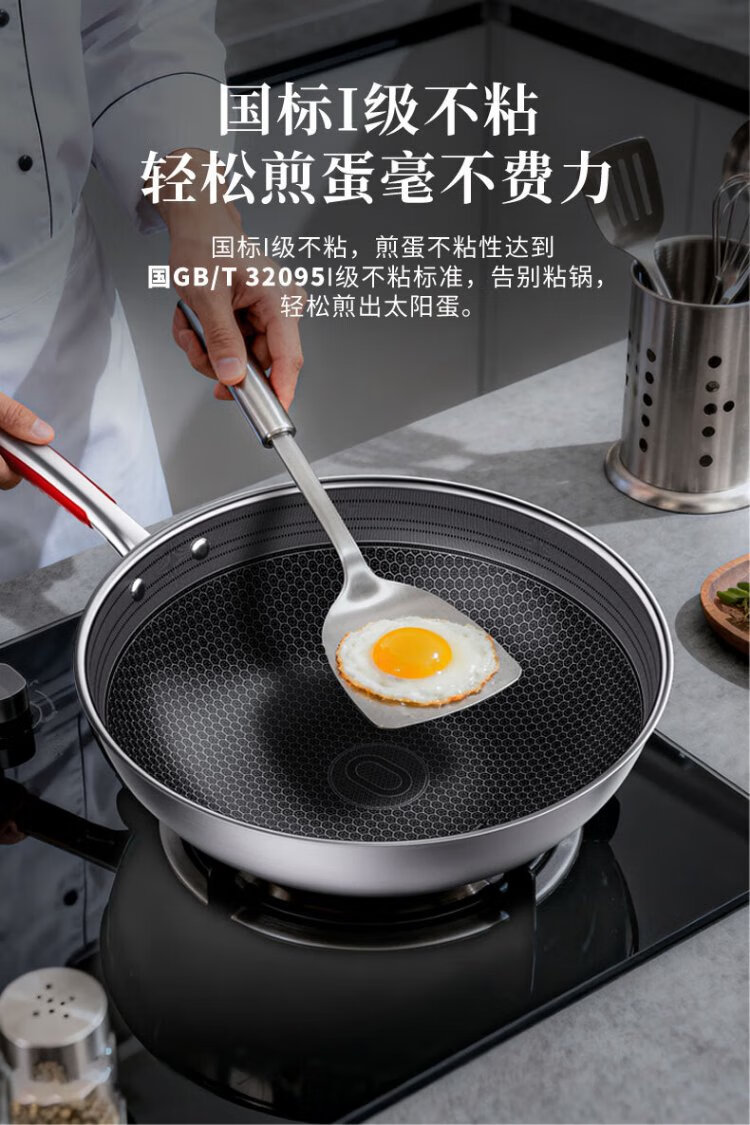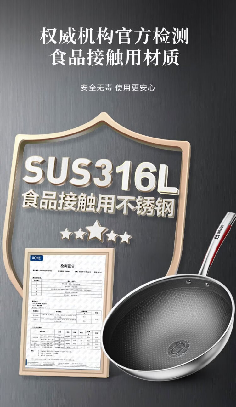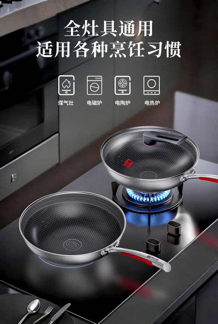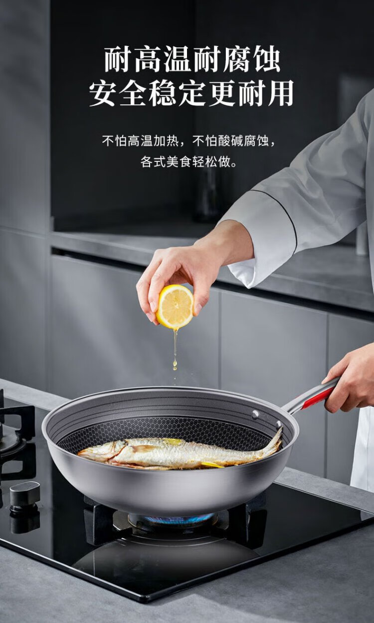 Kangbach wok non-stick pan 316L stainless steel wok 32cm honeycomb flat-bottomed frying pan induction cooker gas stove universal