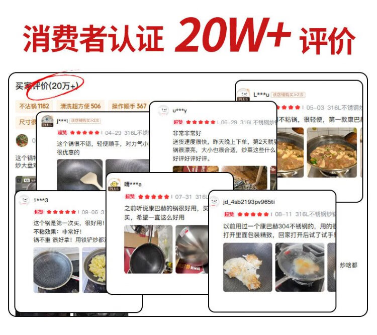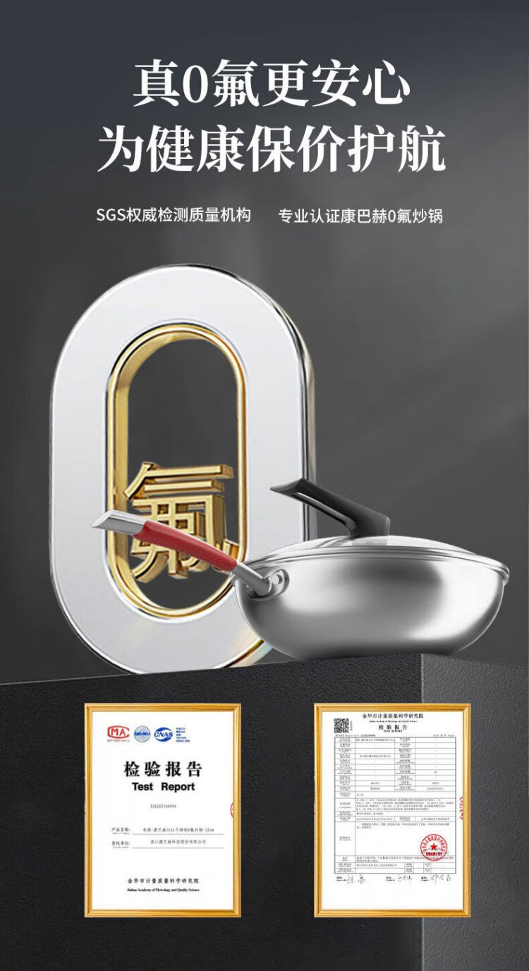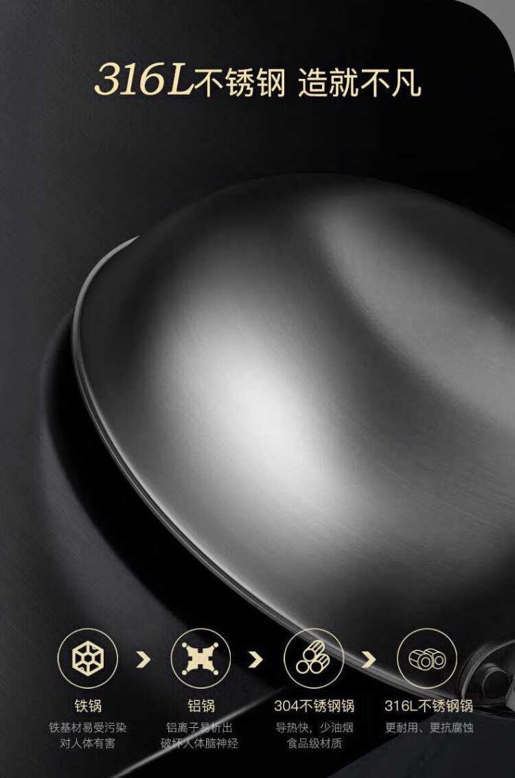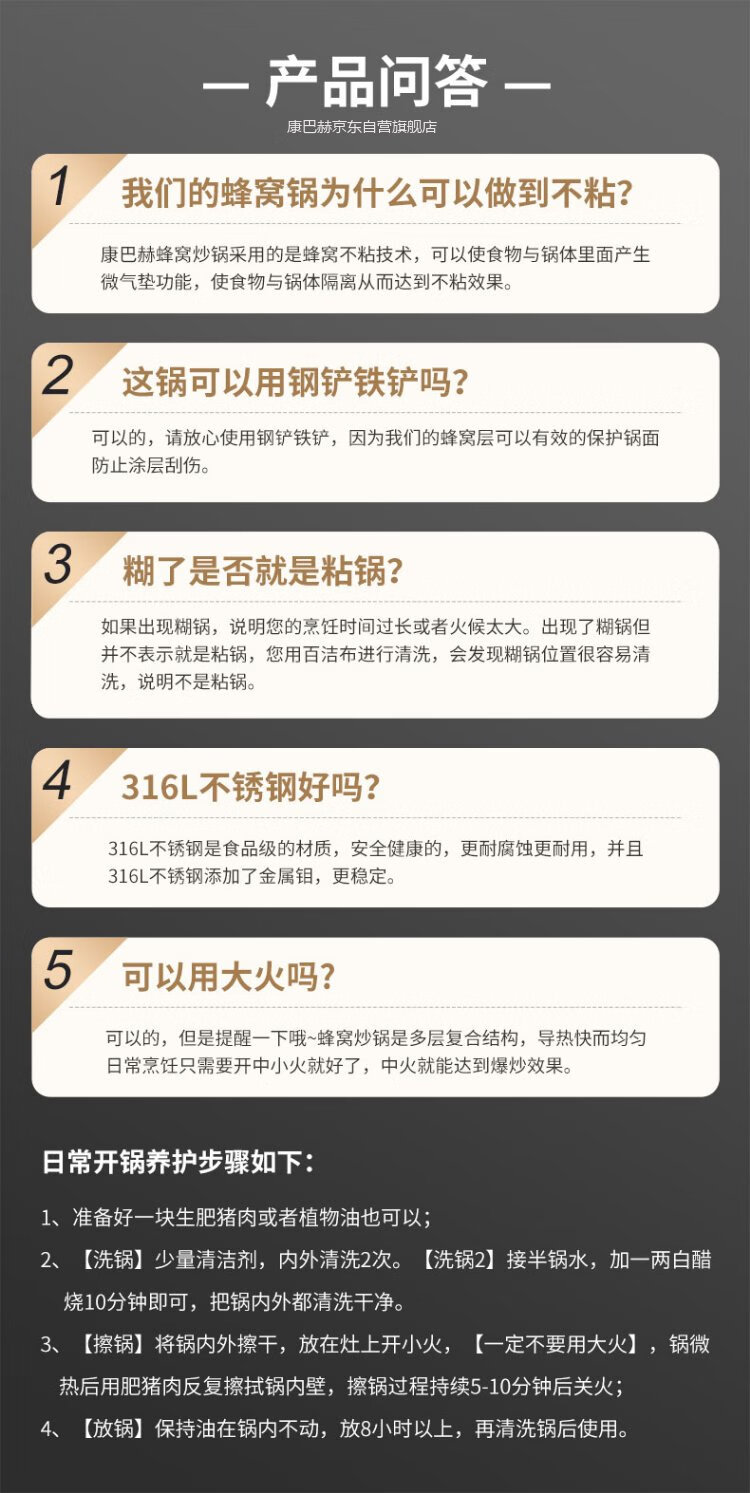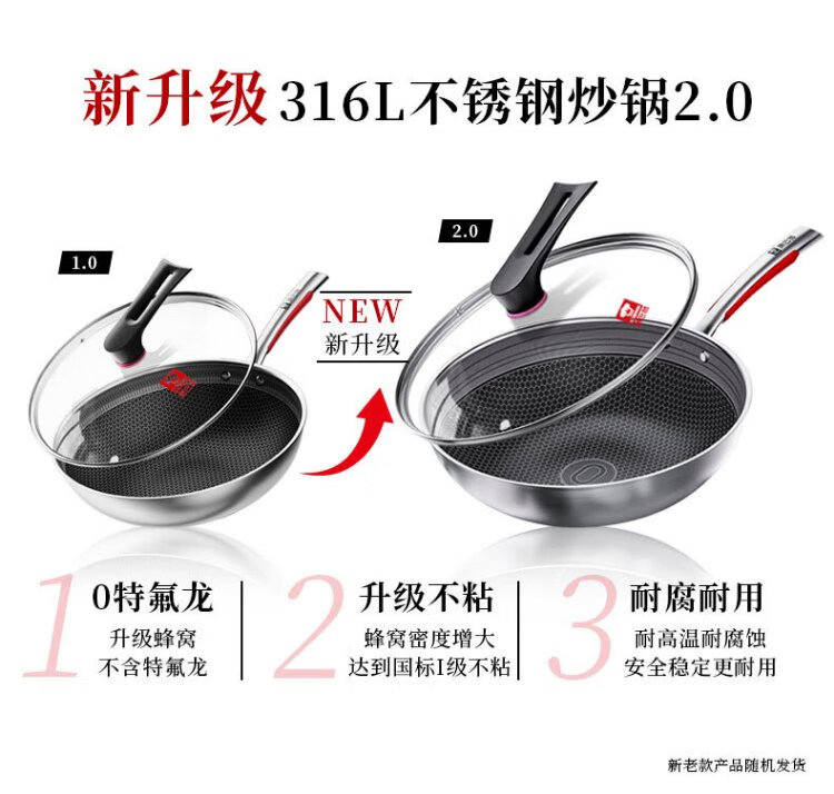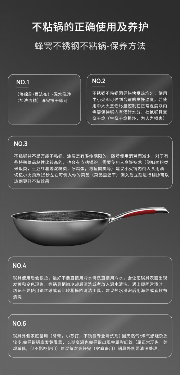Kangbach wok non-stick pan 316L stainless steel wok 32cm honeycomb flat-bottomed frying pan induction cooker gas stove universal